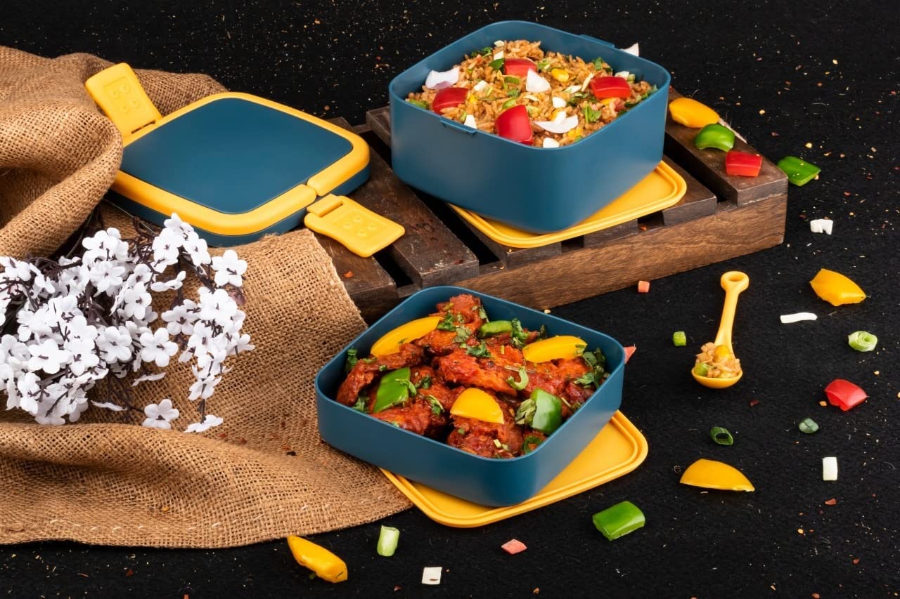 • Two Square Containers: Includes two spacious square containers, perfect for separating different food items while maximizing storage efficiency.