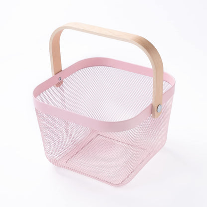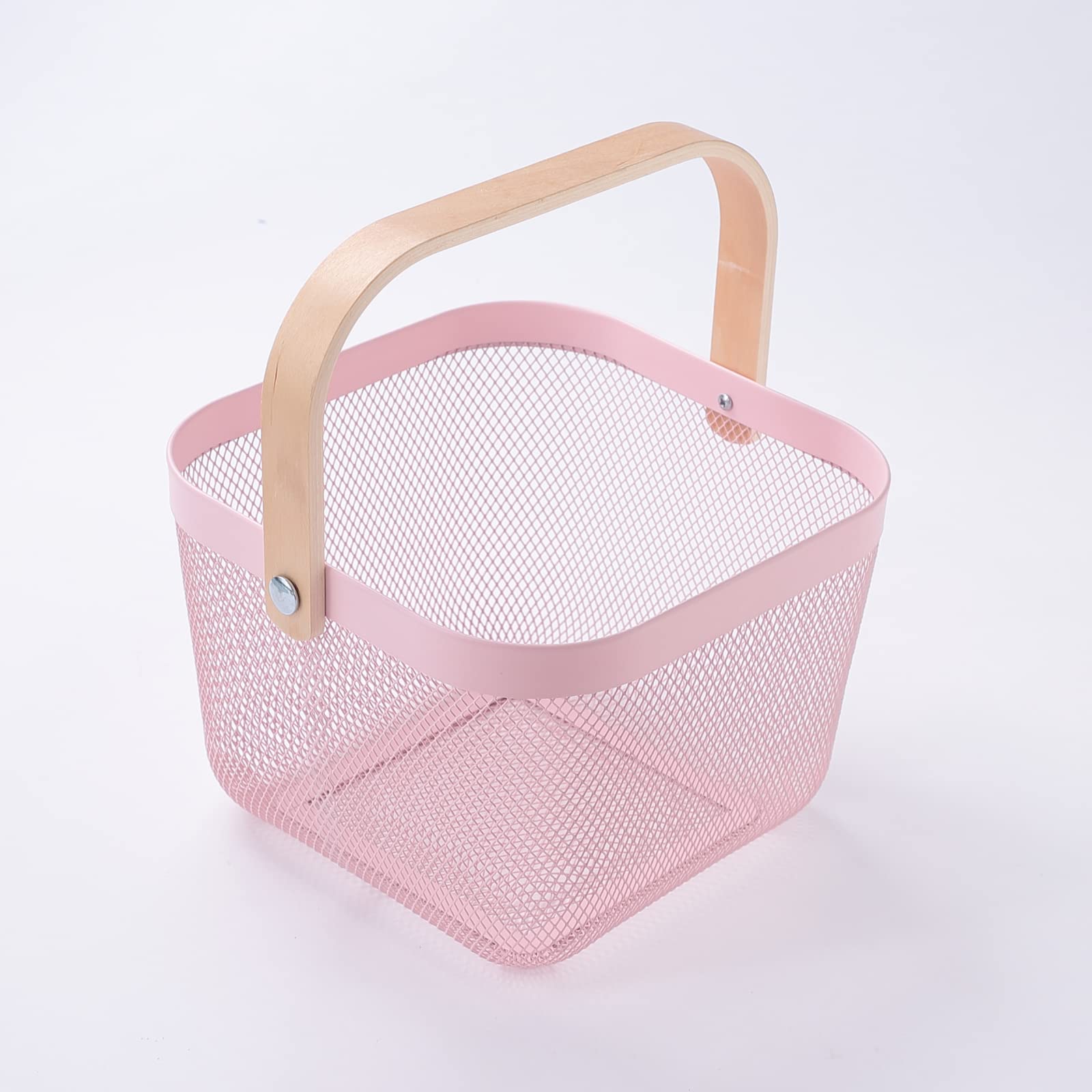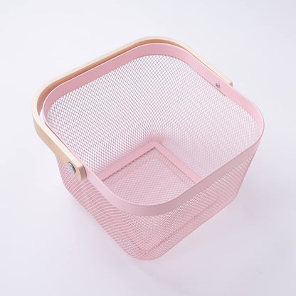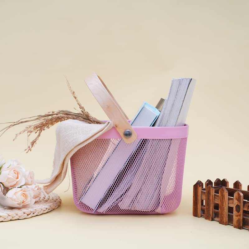 Metal Wire Basket with Handle | Open Storage Bin for Fruits & Books | 26 x 25 x 18 CM | Pink