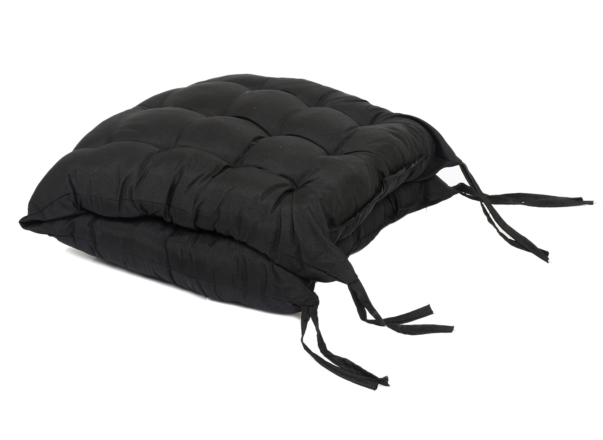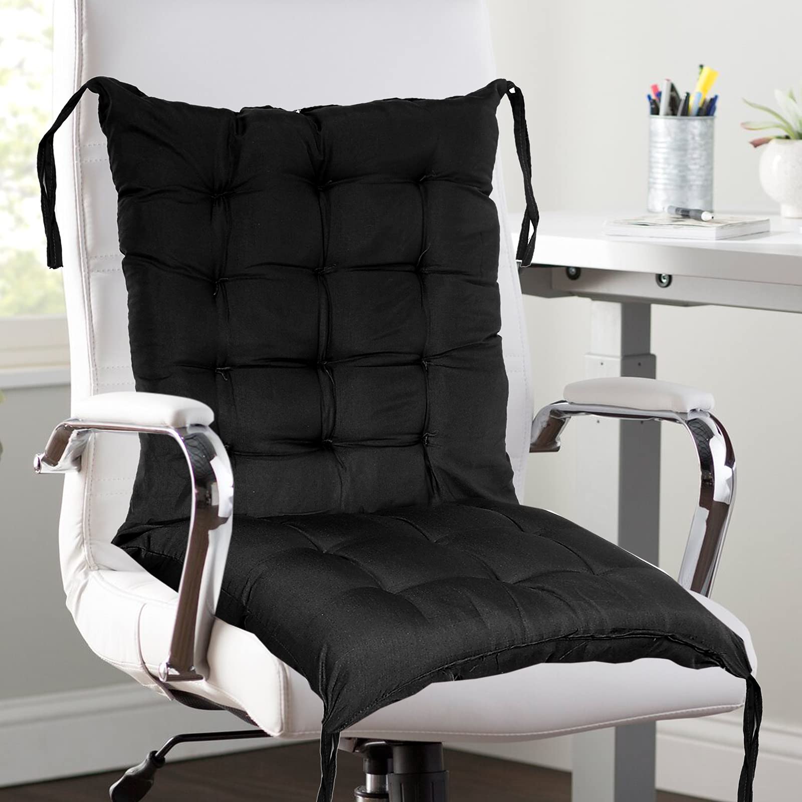 Kuber Industries Microfiber Back and Seat Chair Cushion for Indoor Outdoor Patio Chair, Rocking Chair, Office Chair, Desk Chair, Dining Chairs, Lounge Chair with Ties, 18 * 36 Inch (Black)