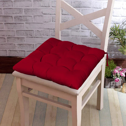 Kuber Industries Microfiber Square Chair Pad Seat Cushion for Car Pad, Office Chair, Indoor/Outdoor, Dining Living Room, Kitchen with Ties-Pack of 2, 18 * 18 Inch (Maroon)