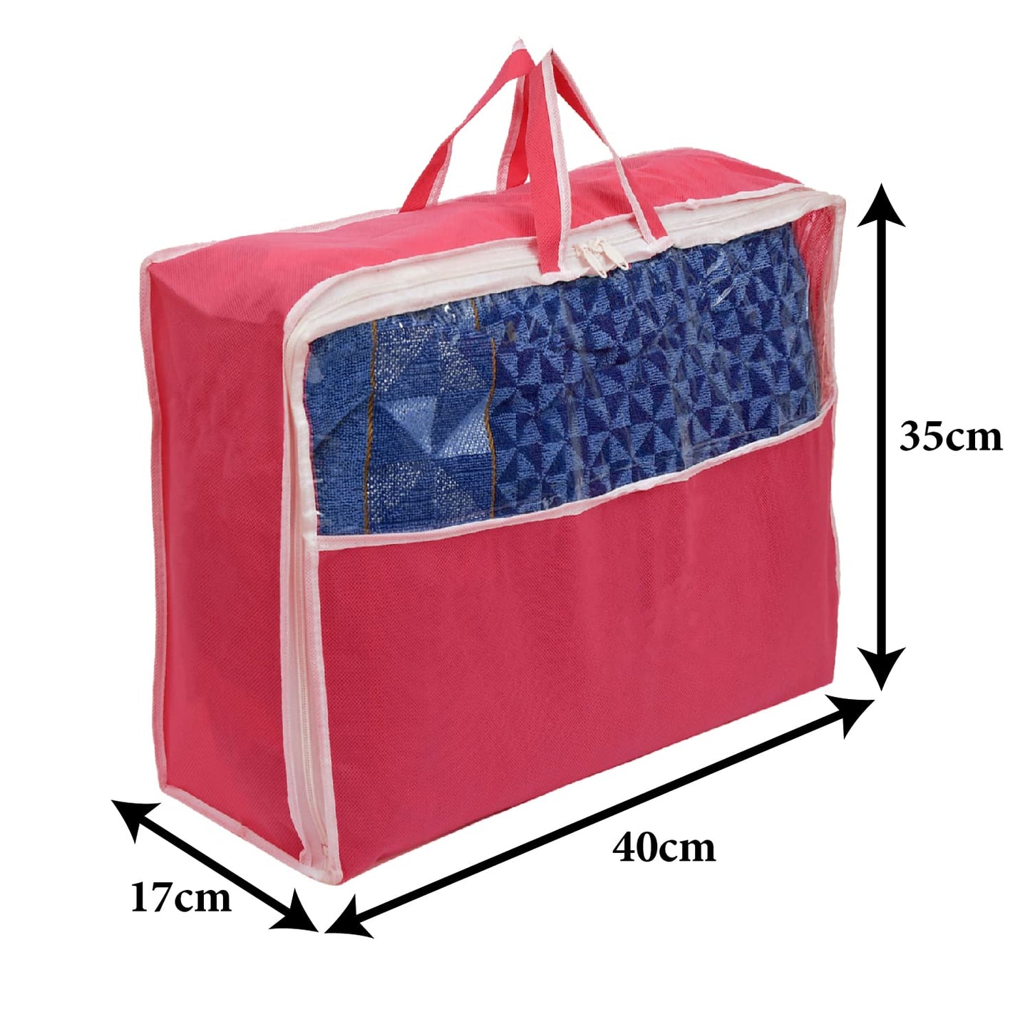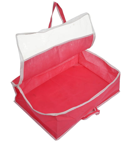 Non-Woven Cloth Cover/Organizer For Store Saree, Lehenga, Suit, Dress, Clothes With Top Tranasparent Window (Pink)
