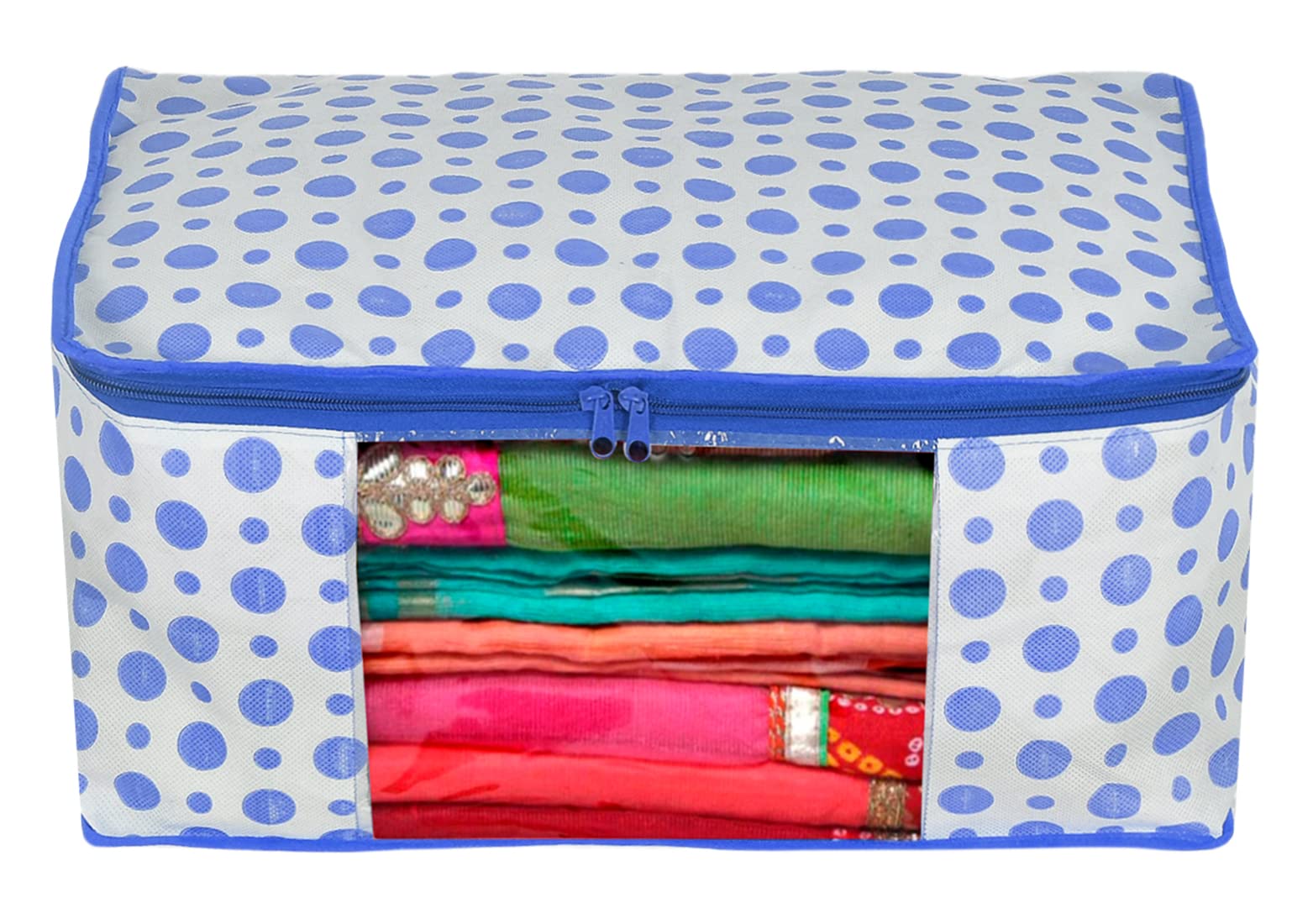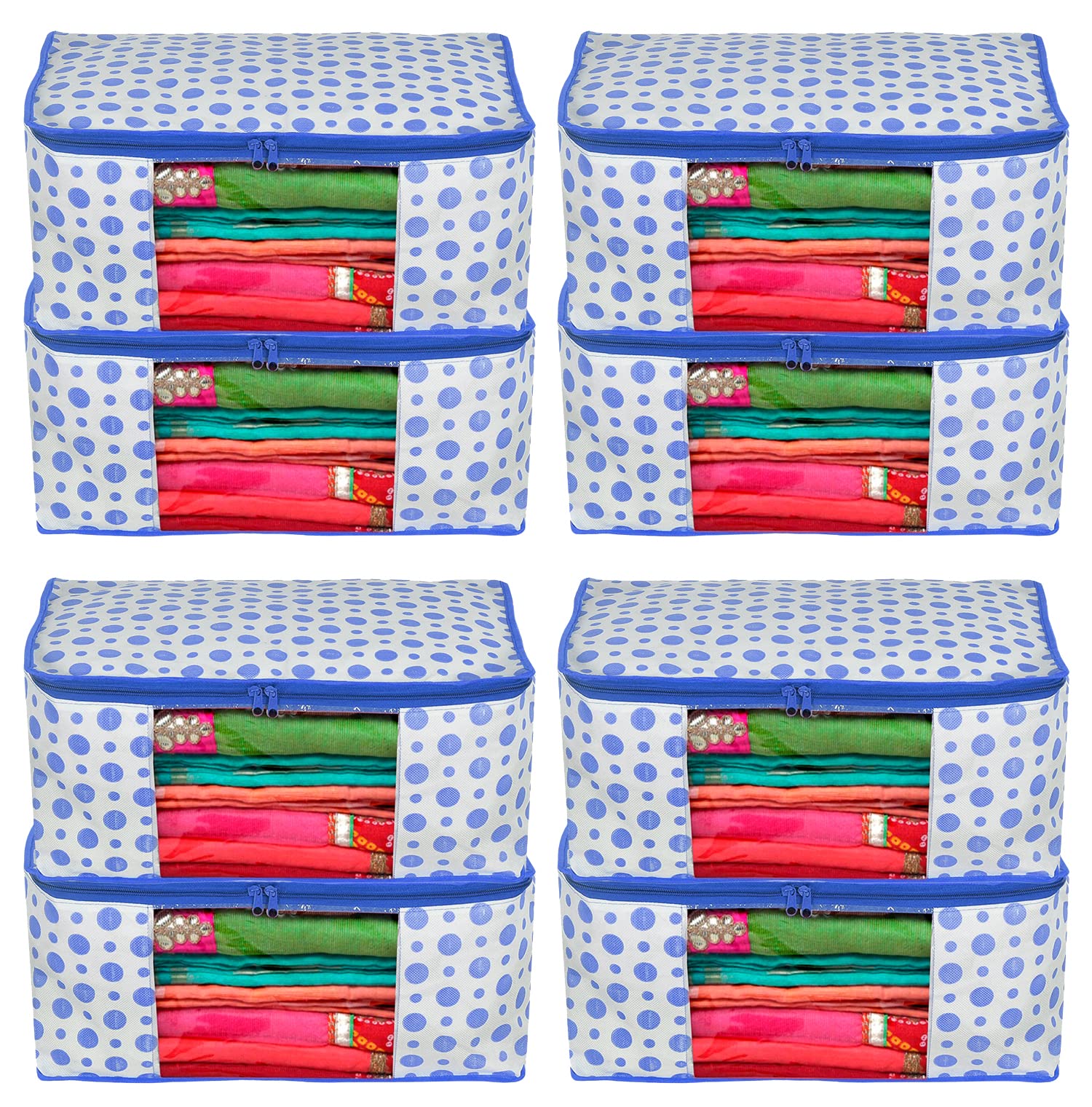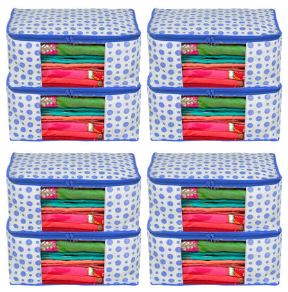 Kuber Industries Dot Printed Non-Woven Saree Cover, Cloth Organizer, Wardrobe Organiser With Tranasparent Window- Pack of 8 (Blue)-46KM0500