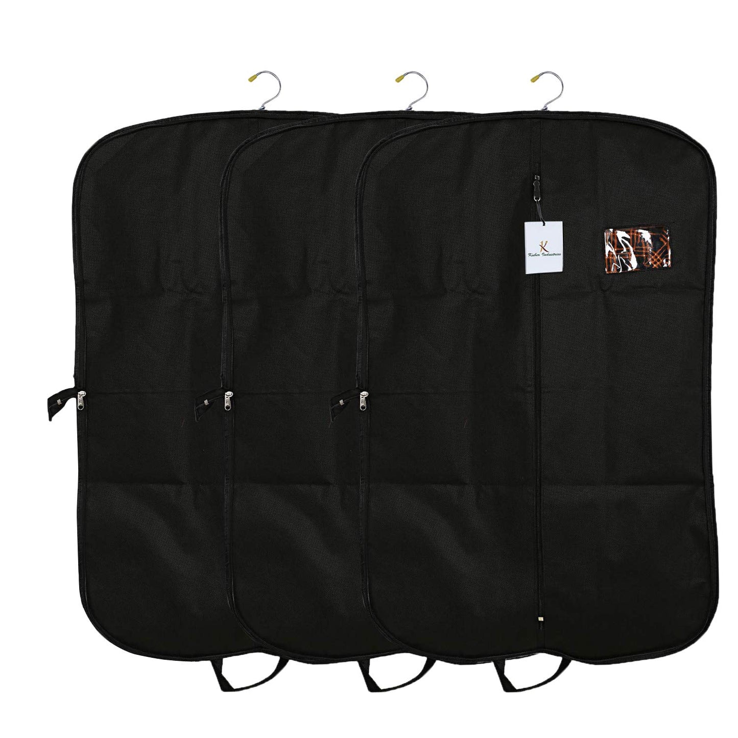Kuber Industries Non Woven Foldable Men's Coat Blazer Suit Cover|Zipper Closure with Small Window|Sturdy Hook & Durable Handle|Size 94 x 61 x 1 CM|Pack of 3 (Black) -CTKTC041367