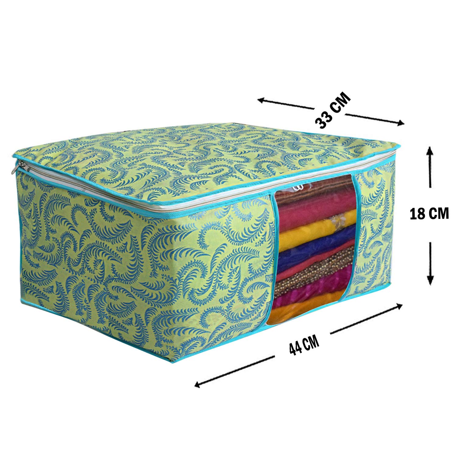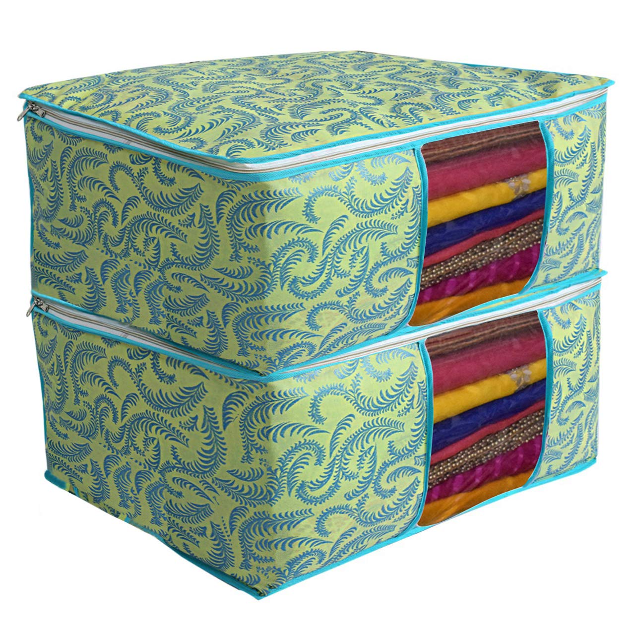 Kuber Industries Non-Woven Metalic Print 2 Piece Non Woven Saree Cover Set (Green)