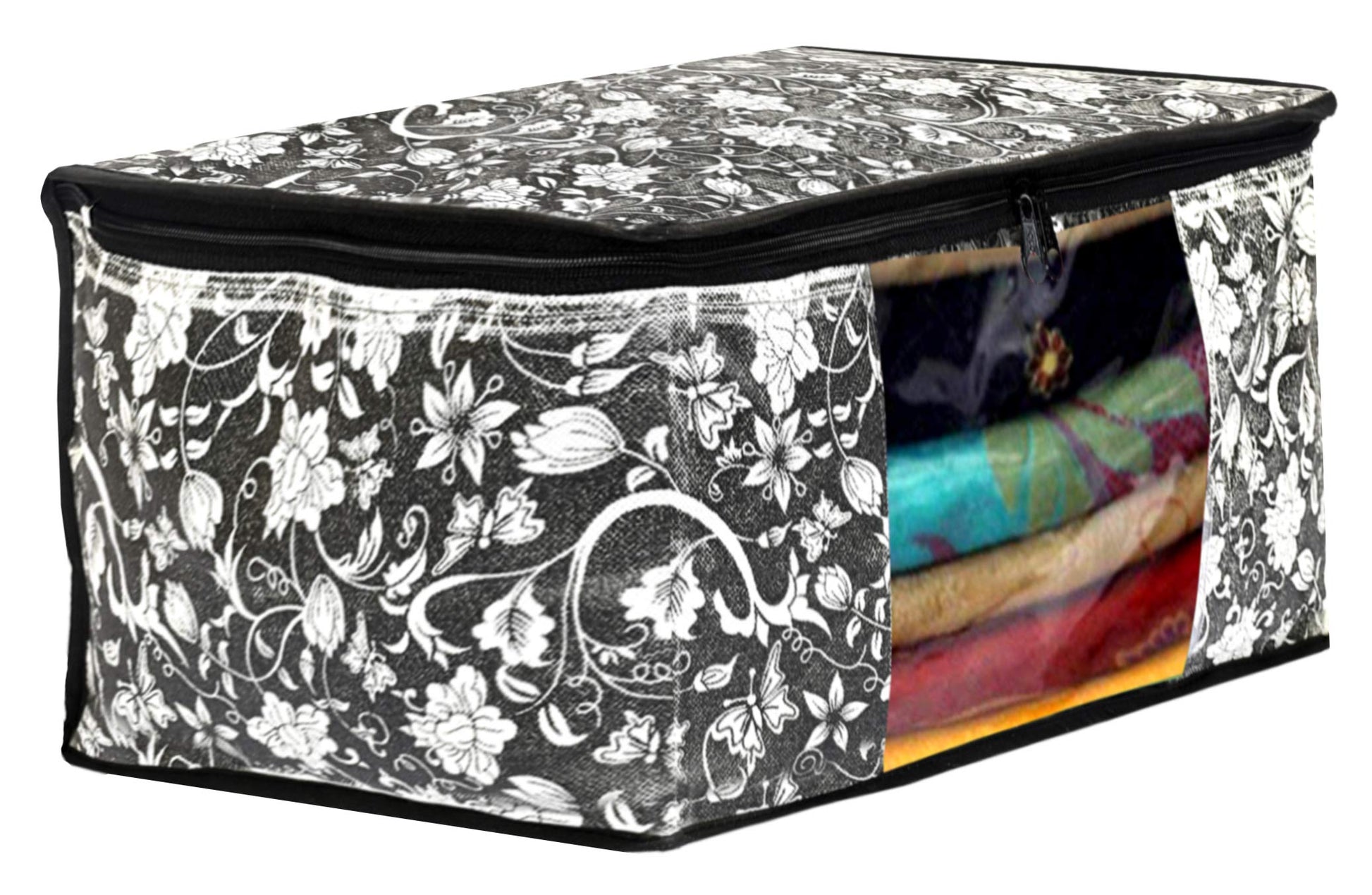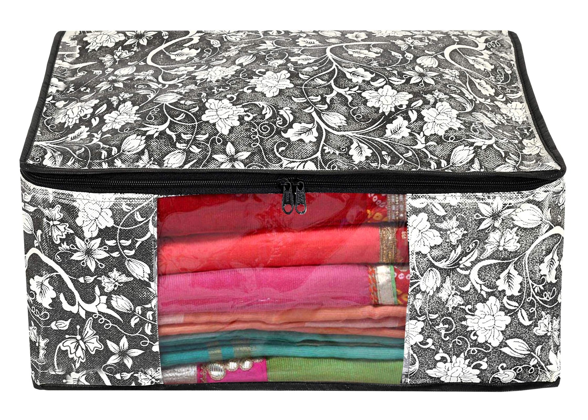 • Transparent Top Panel: The transparent design allows easy visibility of contents, enabling you to quickly locate your desired saree without the hassle of searching through multiple covers.