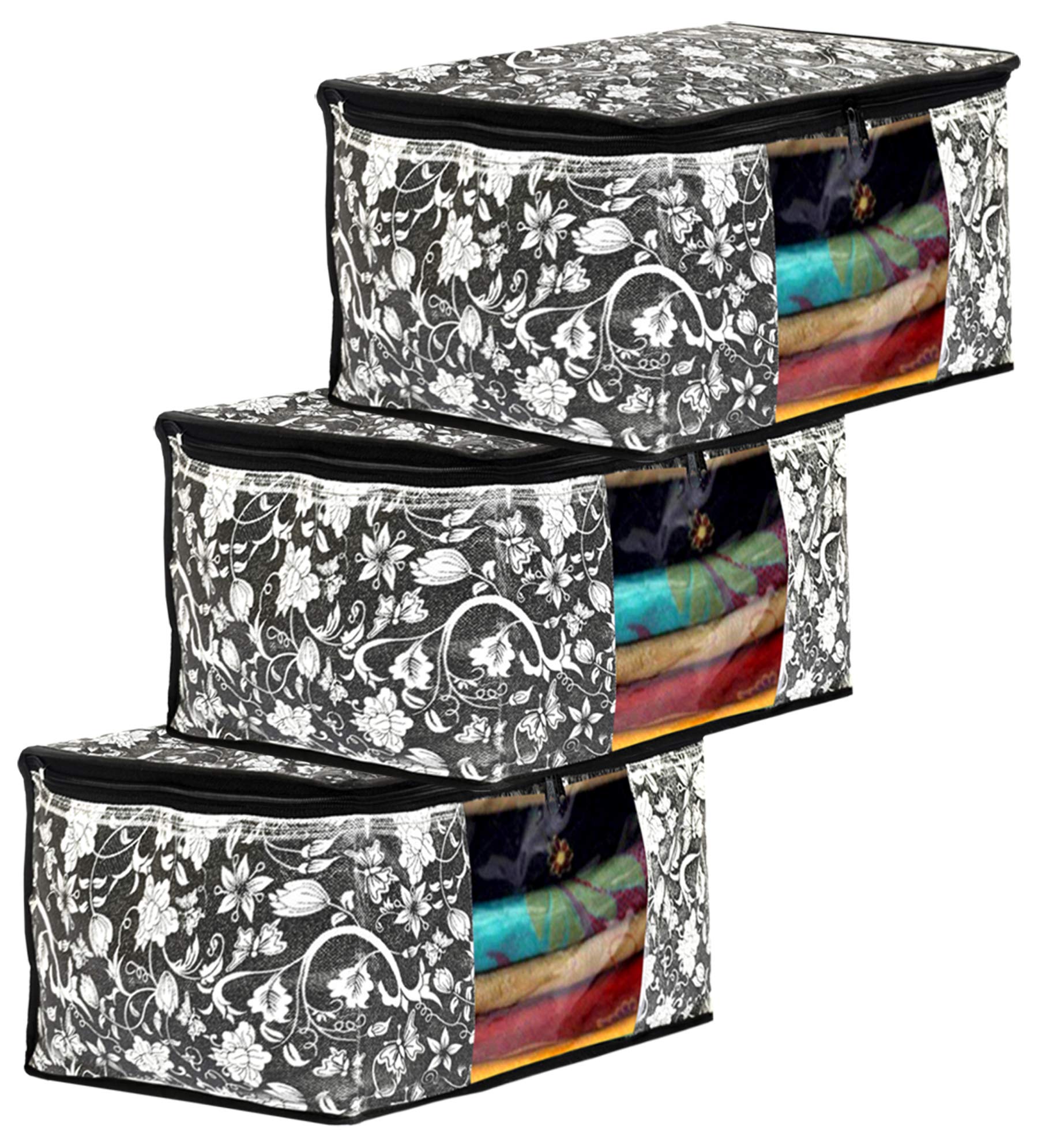 Non Woven Saree Covers With Zip|Saree Covers For Storage|Saree Packing Covers For Wedding|Pack of 3 (Black)