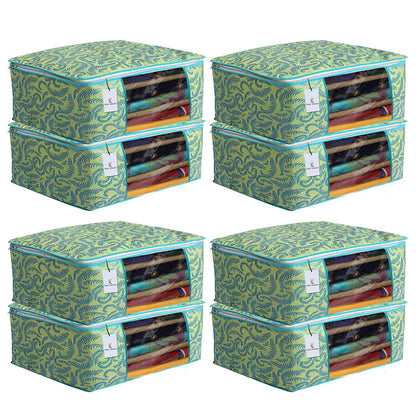 Kuber Industries Non Woven Saree Covers With Zip|Saree Covers For Storage|Saree Packing Covers For Wedding|Pack of 8 (Green)
