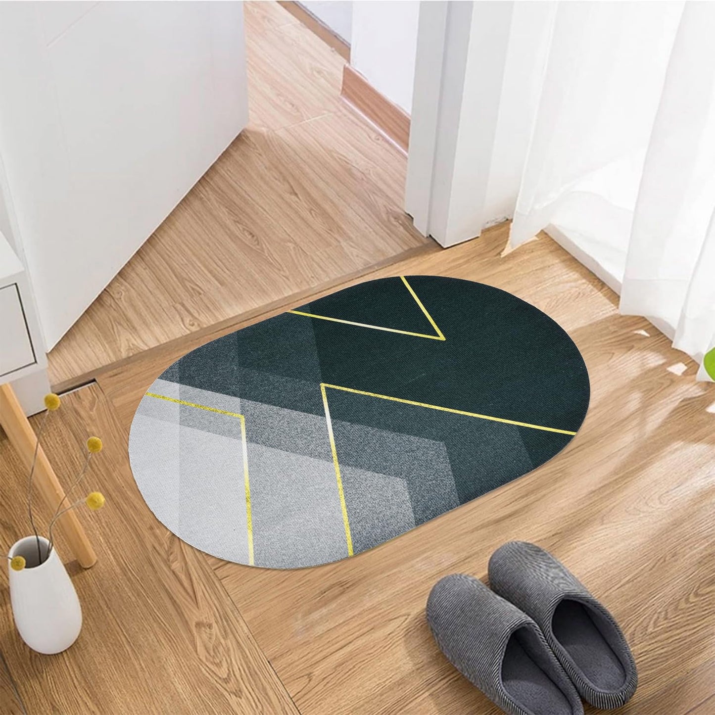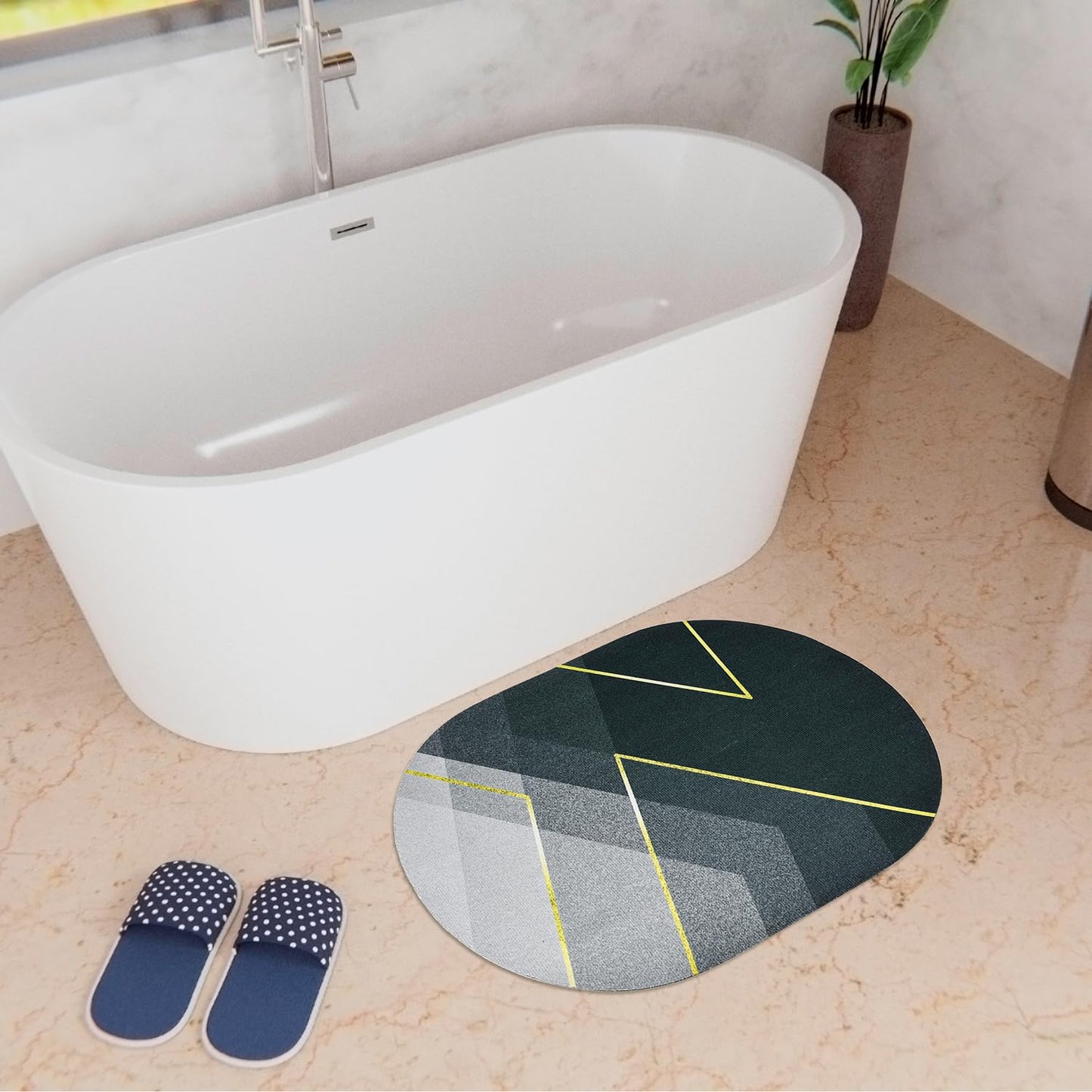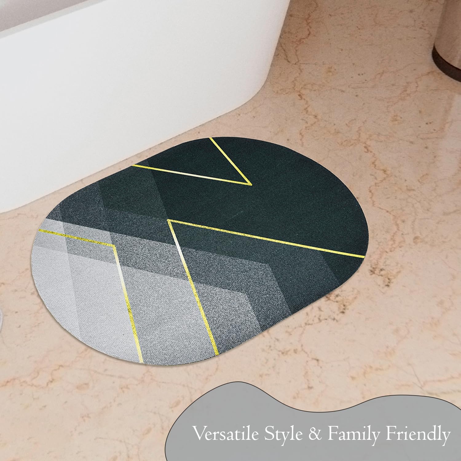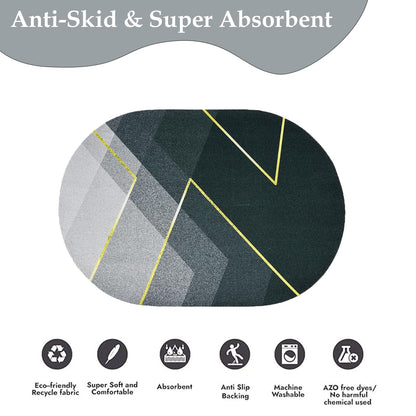 Kuber Industries Oval Bathmat | Soft Anti Skid Door Mat | Non Woven Floor Mat for Home | Non-Slip Mat for Shower-Bathtub | HY057 | Black & Gray