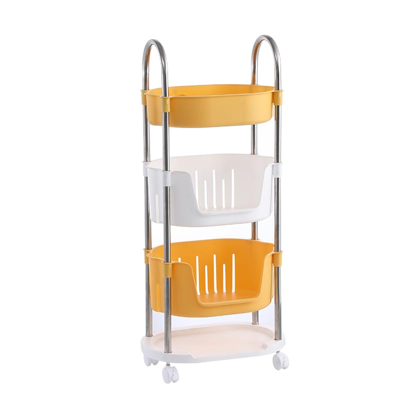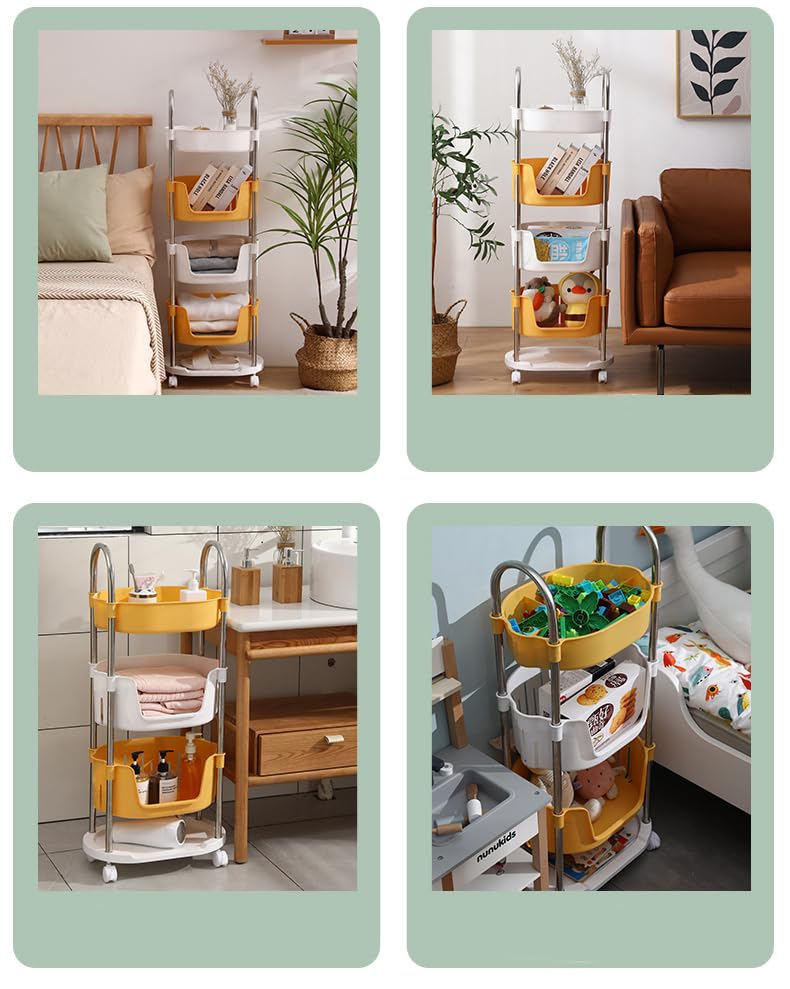 (Pack of 3) Utility Rolling Cart | 4 Tier Kithen Storage Cart with Caster Wheels | Space Saving Home Storage Organizer | Trolley Rack with Wheels | YM564YW | Yellow White