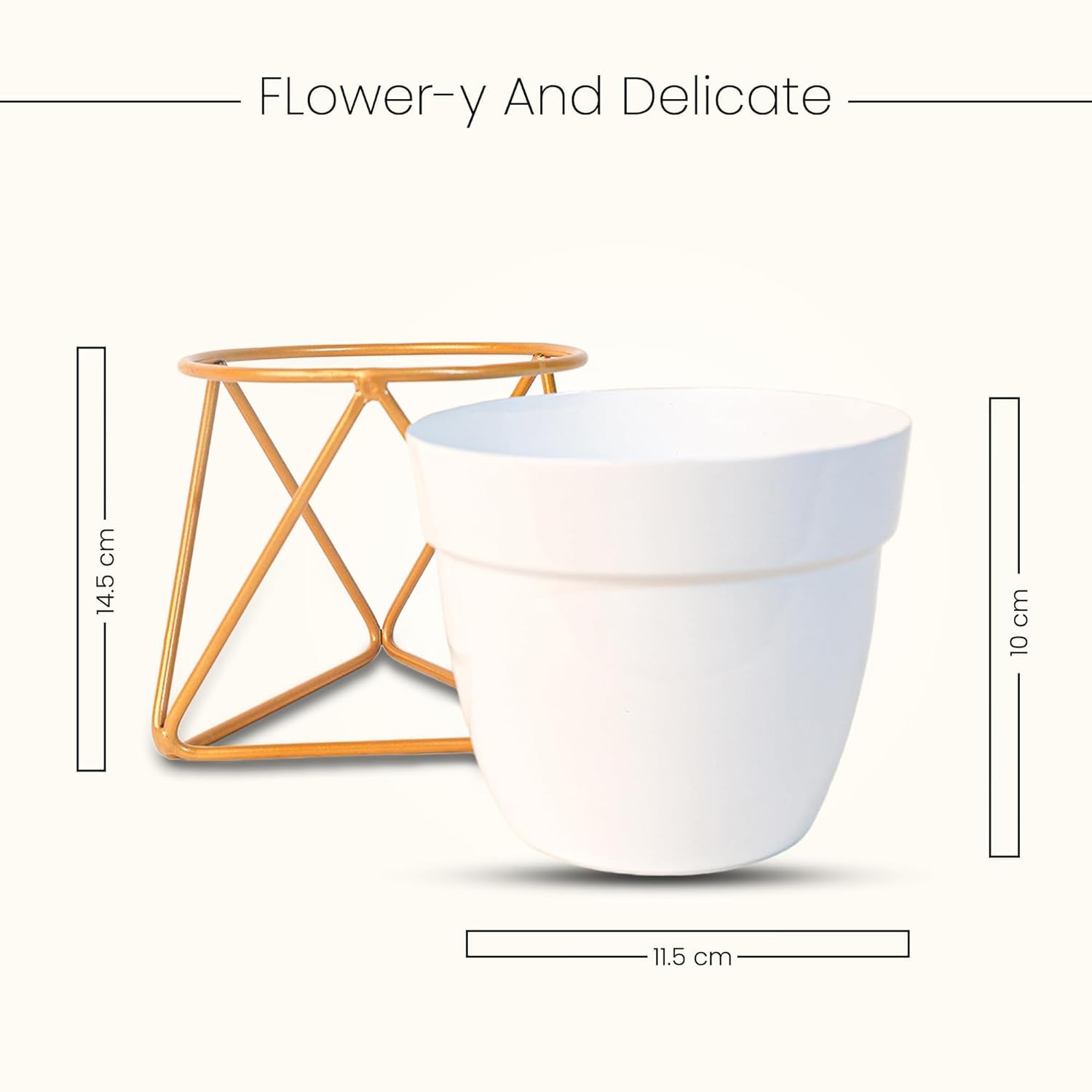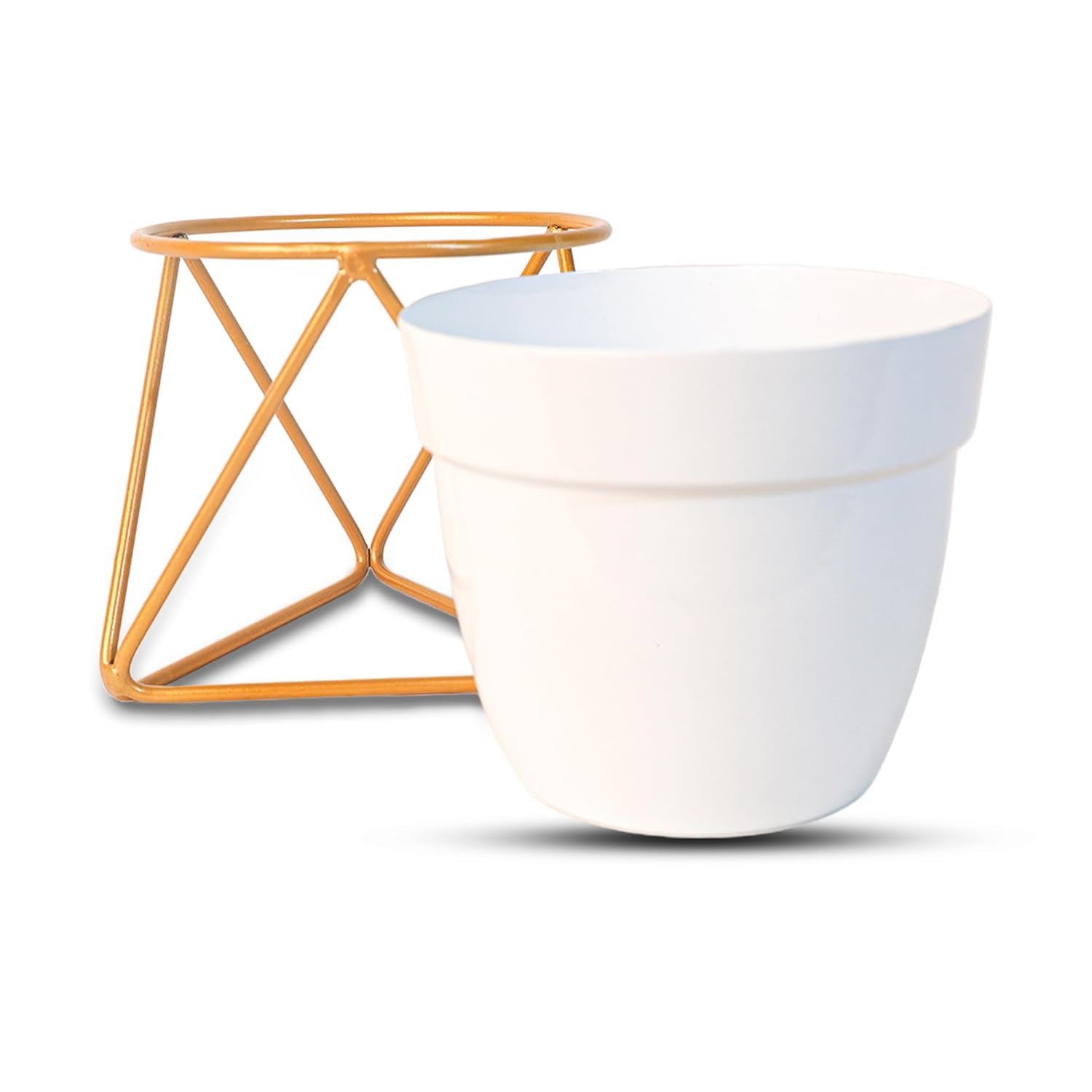 Urbane Home Planter | Plant Stand for Home | Planter Pot Stand for Outdoor | Planter Stand for Garden | Gamla Stand for Home | Metal Indoor Pots with Drainage Hole | Set of 1 | White