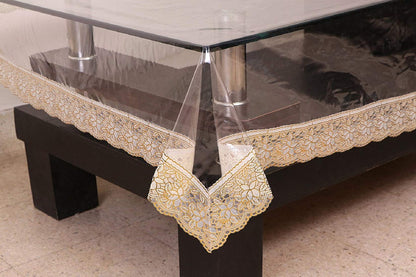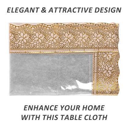 PVC Gold Bordered Rectangular 6 Seater Dining Table Cover (Transparent)