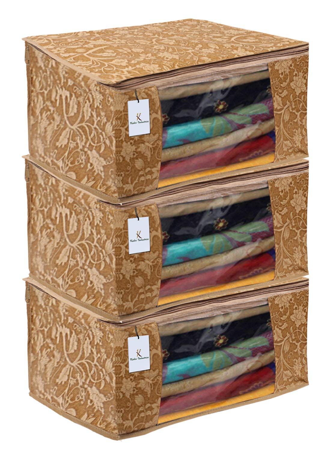 Kuber Industries Saree Covers with Zip - Pack of 3 (Beige)