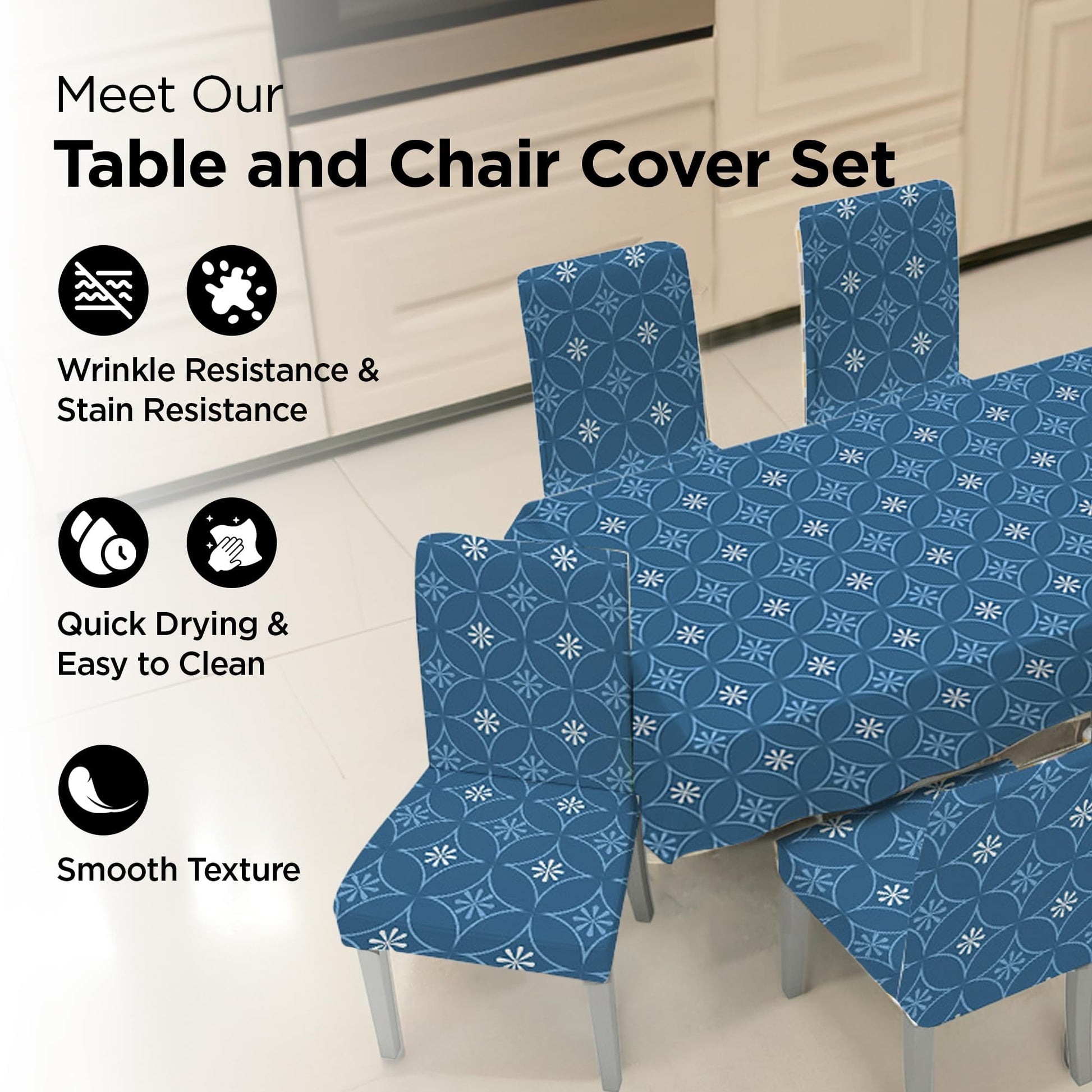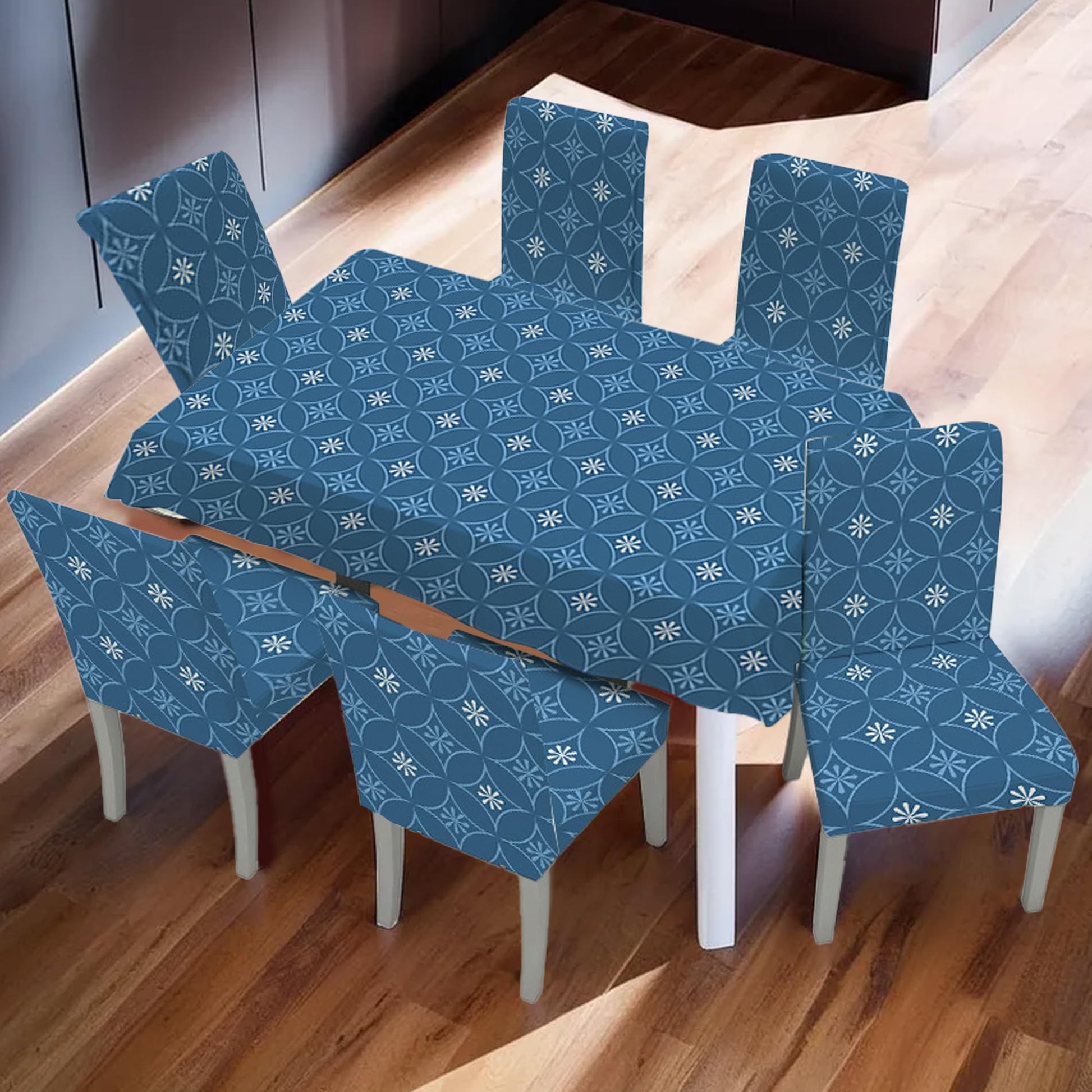 Not only do these covers protect your furniture, but they also elevate the overall look of your dining area. The beautiful blue floral design adds a touch of elegance, making your dining setup inviting and stylish. Perfect for everyday use and special occasions alike, our dining table and chair covers are a must-have for any home.