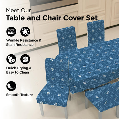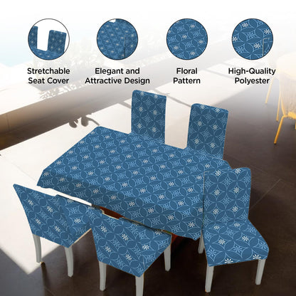 Kuber Industries Set of 7 Waterproof & Oil Repellent Dining Table Chair Cover 6 Seater Full Set | Washable & Dustproof Table & Seat Cover Protector Slipcover for Home | Blue Floral
