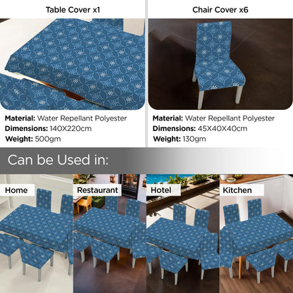 Set of 7 Waterproof & Oil Repellent Dining Table Chair Cover 6 Seater Full Set | Washable & Dustproof Table & Seat Cover Protector Slipcover for Home | Blue Floral