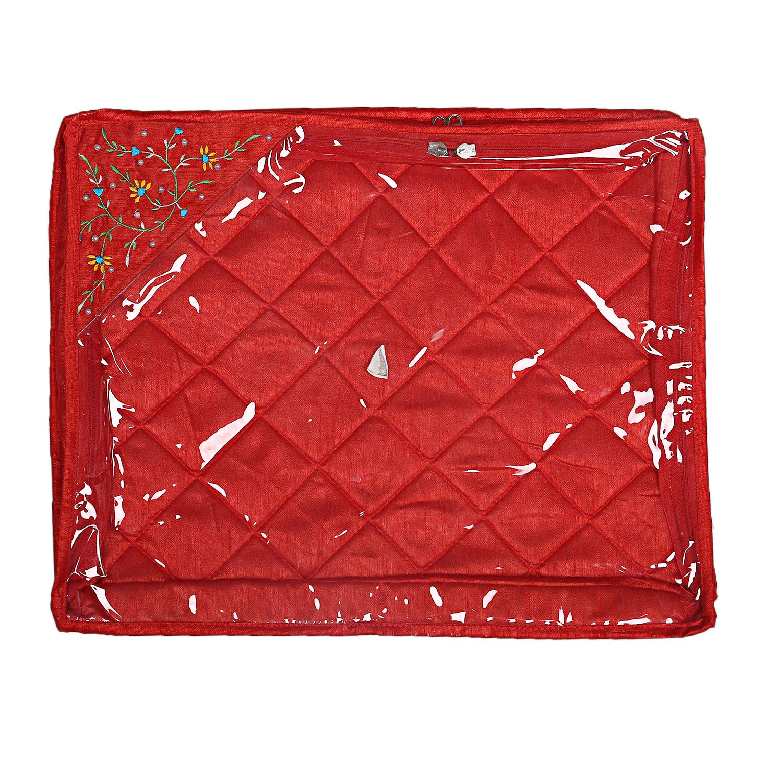 3 Pieces Single Packing Saree Cover - Elegant Silk | Rectangular | Standard Size | Red