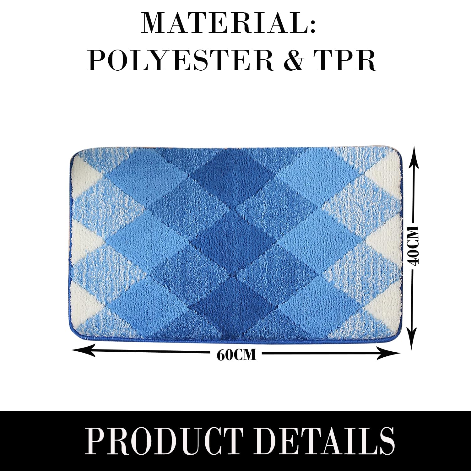 Kuber Industries Soft Bathroom Mat|Anti-Slip Mat for Bathroom Floor|Diamond Design with TPR Backing|Foot Mats for Home, Living Room, Bedroom (Blue)
