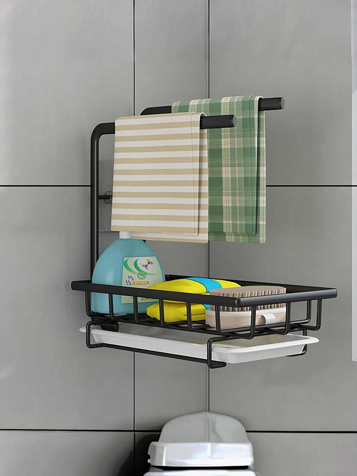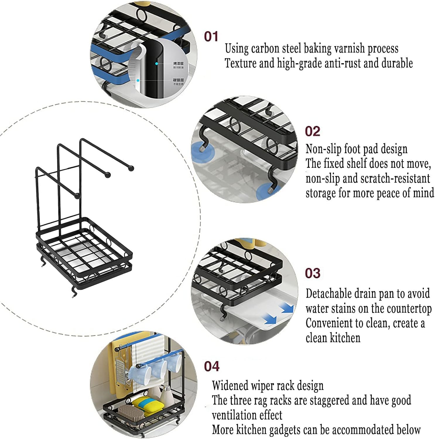 - Stable & Durable: Crafted from high-quality carbon steel and paint, this sponge rack is built to withstand the rigors of daily use. Its sturdy construction guarantees that your kitchen essentials stay securely in place, providing you with a long-lasting solution.