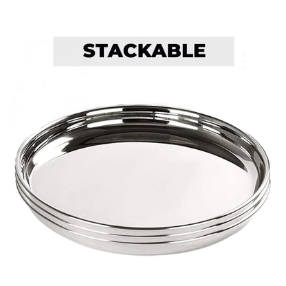 Stainless Steel Dinner Plates Set of 6 | 29 cm Dia I Heavy Gauge & Deep Base | Mirror Finish | Multi-Purpose Steel Thali Set of 6 | Durable and Elegant Dinnerware Set