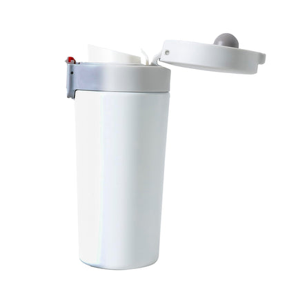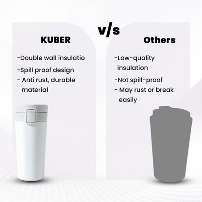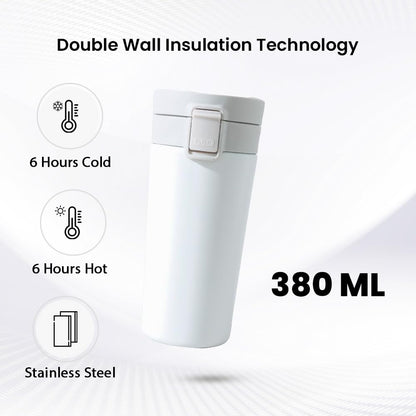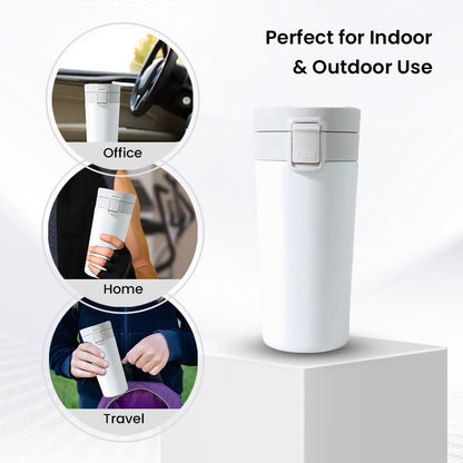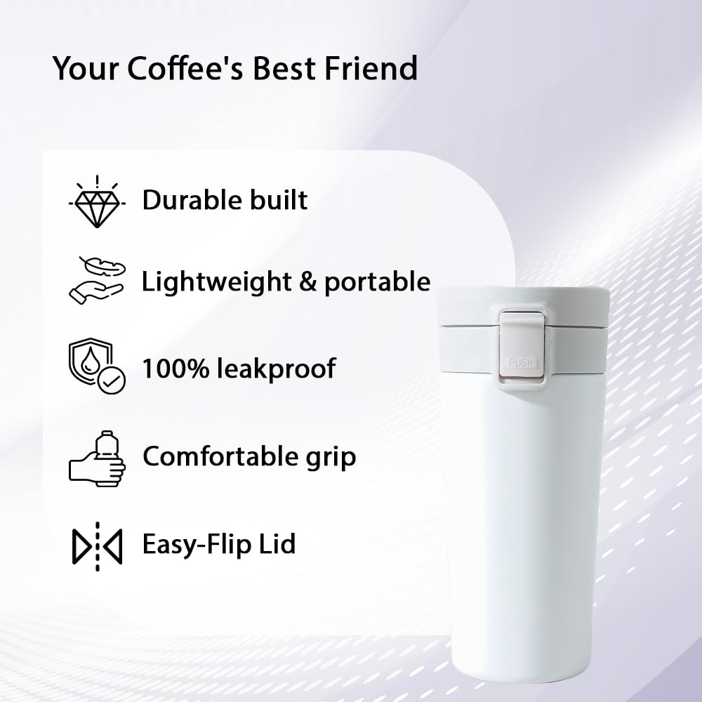 Kuber Industries Stainless Steel Insulated Coffee Tumbler with Sipper Lid 380 ML (White)