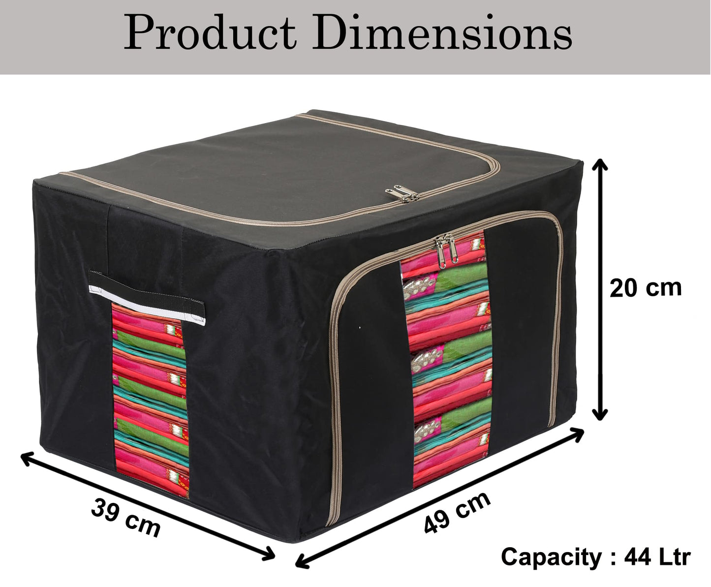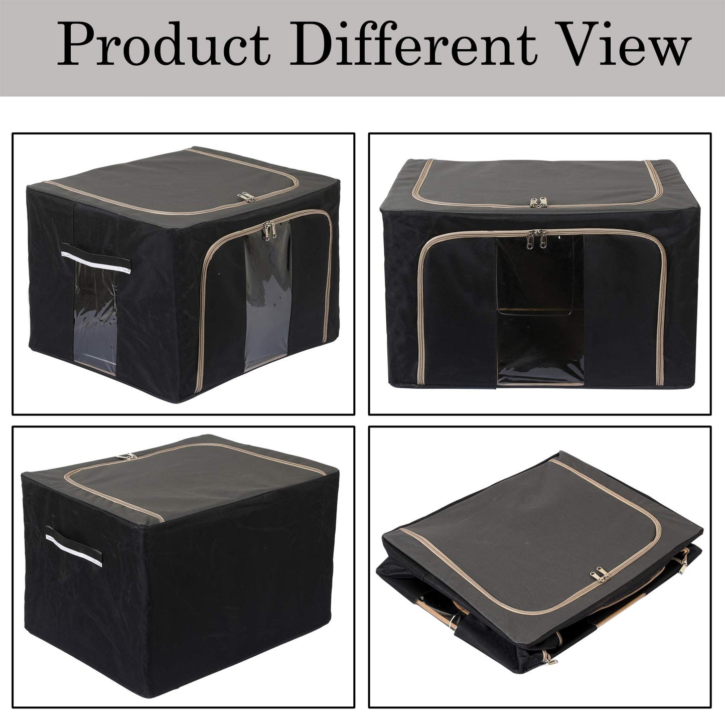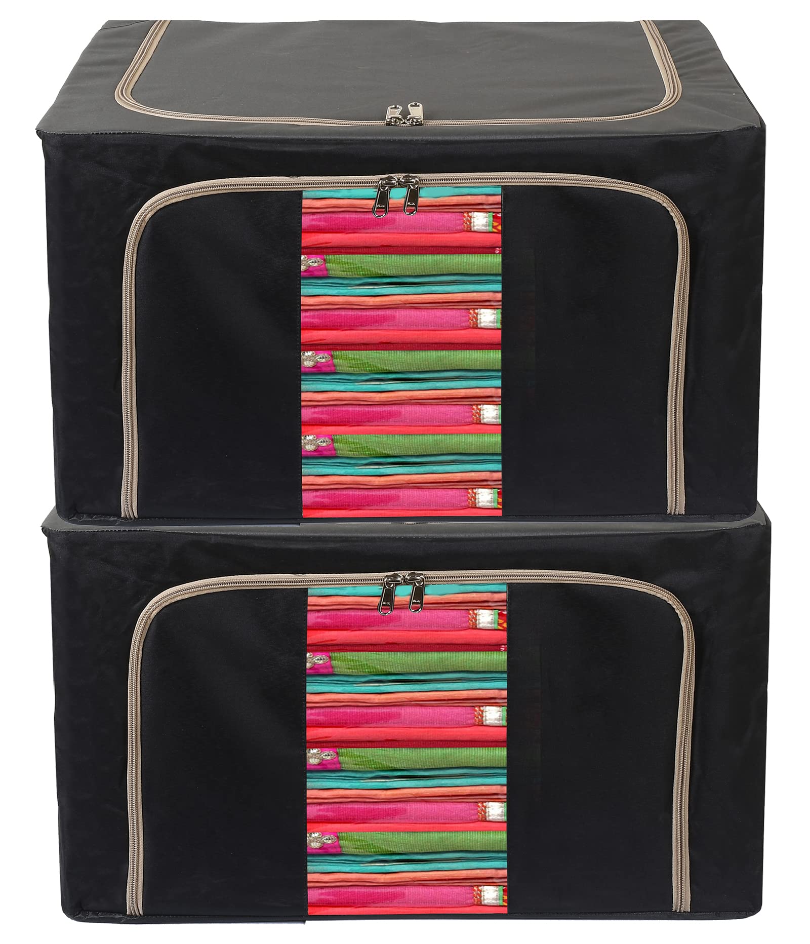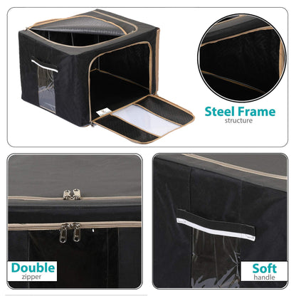 Steel Frame Living Box, Closet Organizer, Cloth Storage Boxes for Wardrobe With Clear Window, 44Ltr.- Pack of 2 (Black & Grey)-44KM0304
