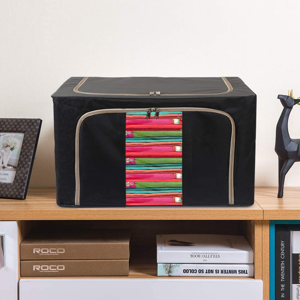 Kuber Industries Steel Frame Living Box, Closet Organizer, Cloth Storage Boxes for Wardrobe With Clear Window, 44Ltr.- Pack of 2 (Black & Grey)-44KM0304