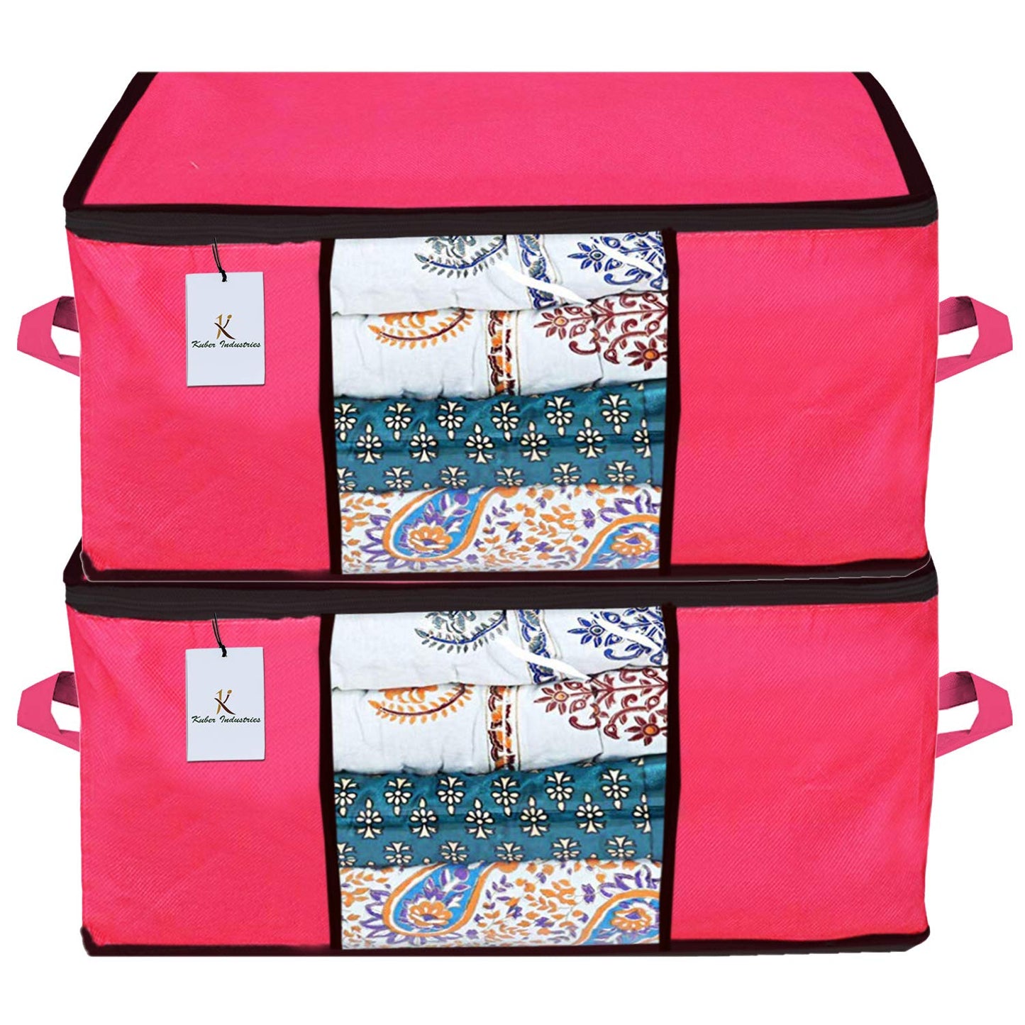 Kuber Industries Underbed Storage Bag, Storage Organiser, Blanket Cover Set of 2 - Pink, Extra Large Size-CTKTC23907