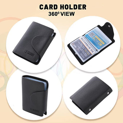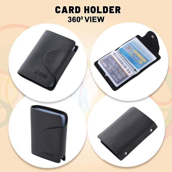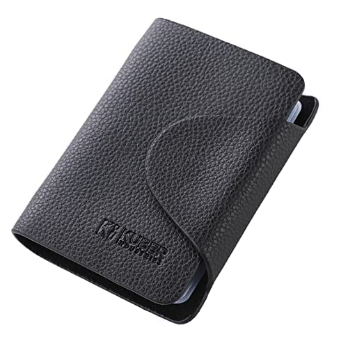 Kuber Industries Wallet for Women/Men | Card Holder for Men & Women | Leather Wallet for ID, Visiting Card, Business Card, ATM Card Holder | Slim Wallet | Butten Closure, Black