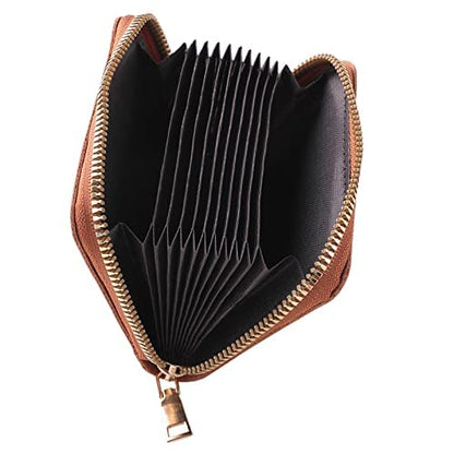 Homestic Card Holder Wallet for Men Women|Debit Credit Card Holder|Wallet for Id, Visiting Card, Buisness Card|Zipper Closure Wallet|Brown