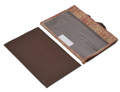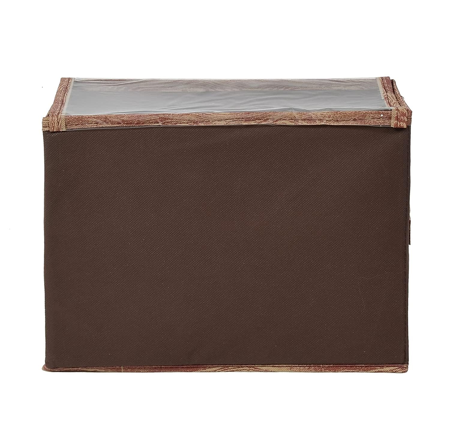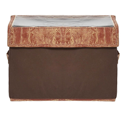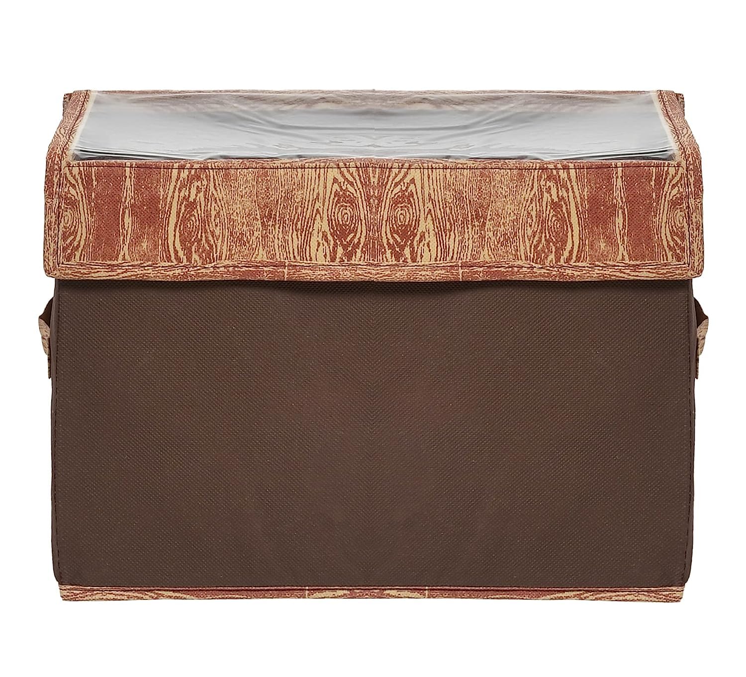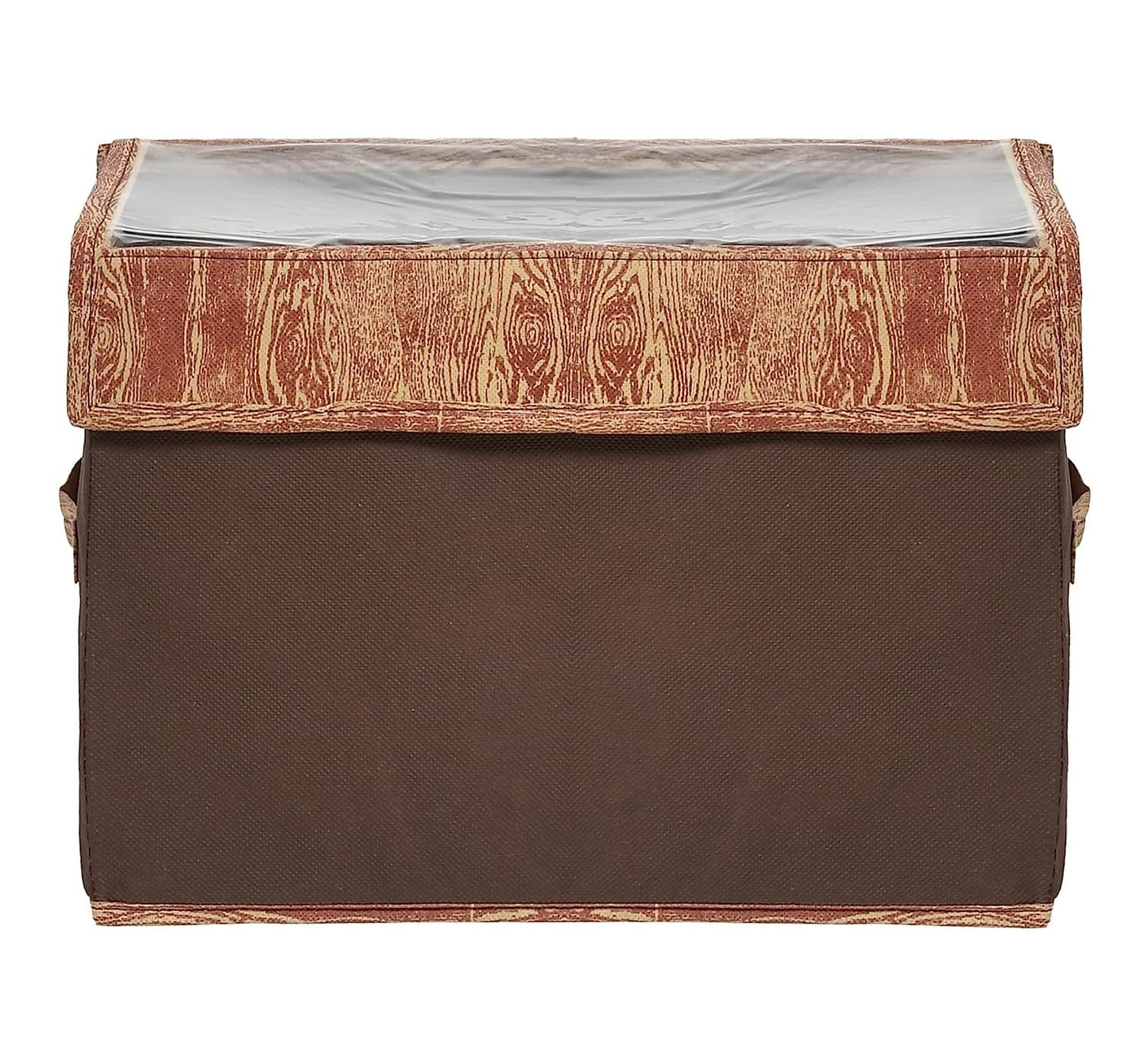 Wooden Design Foldable Small Non-Woven Storage Box|Tranasparent Lid|Durable Handles|Size 35 x 18 x 22 CM (Brown)-44KM0430, Rectangular
