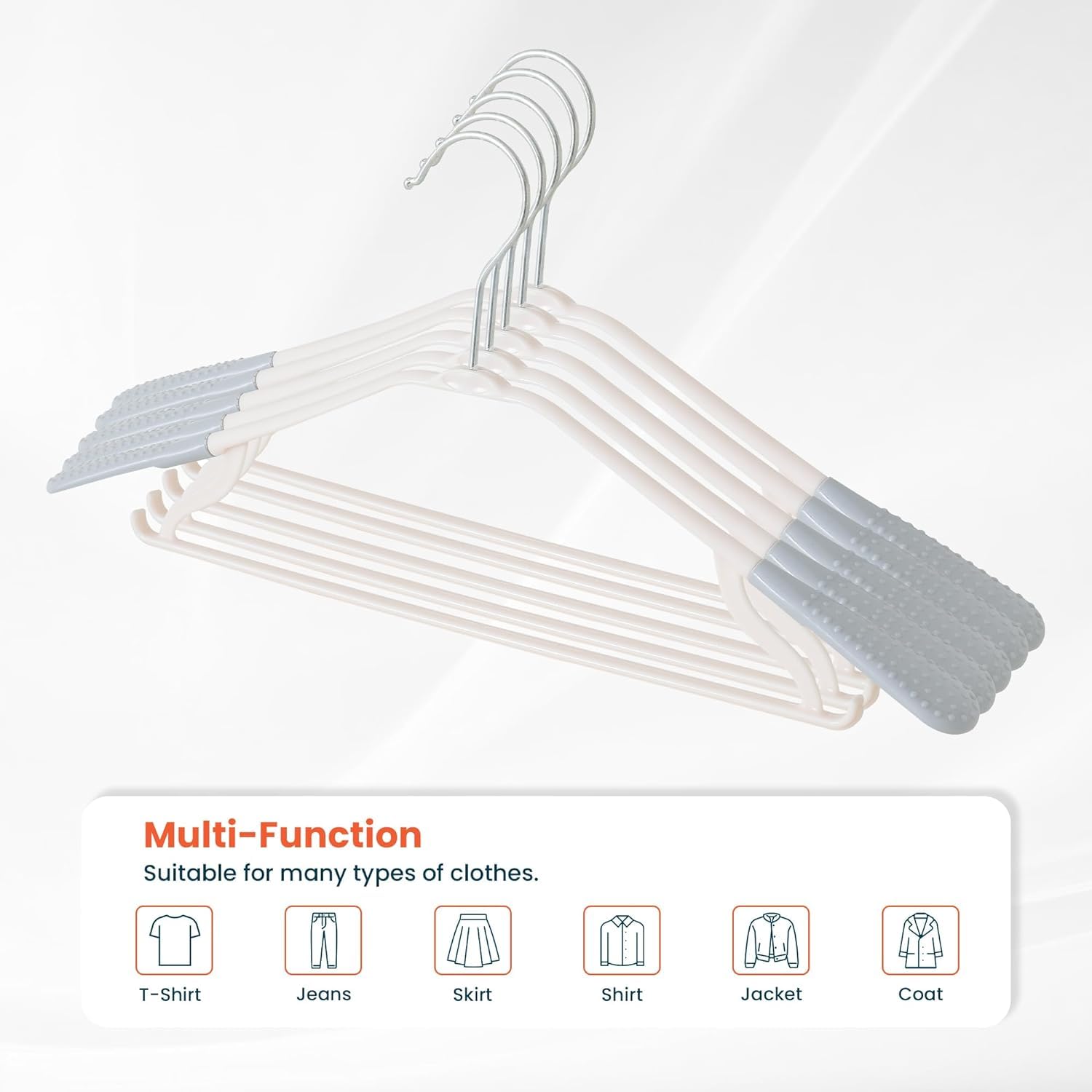 • High-Quality Material: Made from premium PP material, these hangers provide exceptional strength and durability, able to accommodate a variety of clothing items without bending or warping.