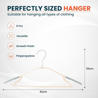 Kuber IndustriesPP Cloth Hanger Set of 5 with Zinc Plated Steel Hook (Grey)