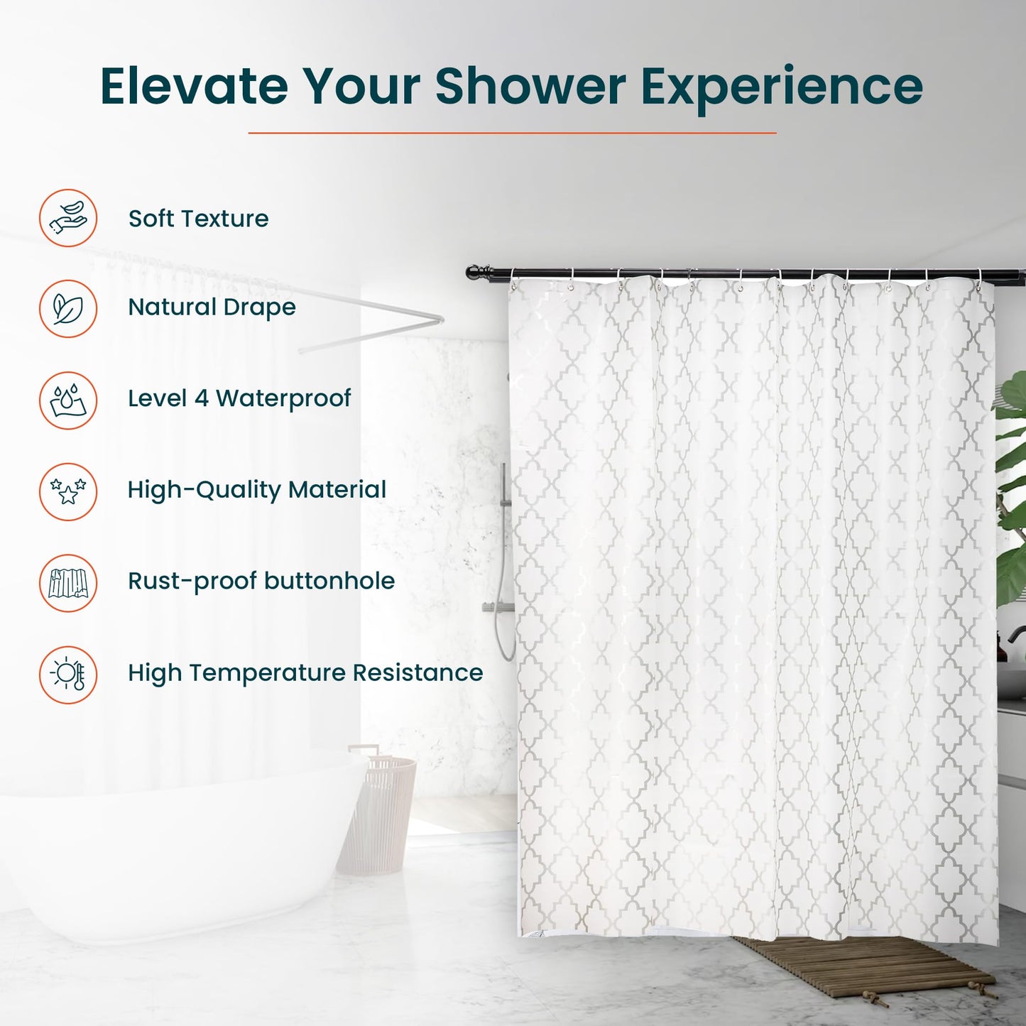 - High Temperature Resistance: Resilient against high temperatures, this curtain is perfect for steamy showers, maintaining its integrity without warping or damage.