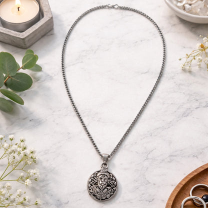Lord Hanuman Pendant Necklace: Silver Tone Bajrangbali Locket | Religious Jewellery for Men & Boys