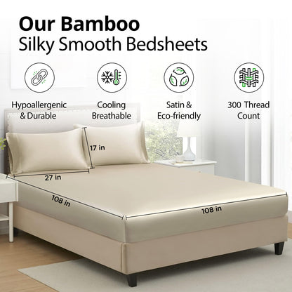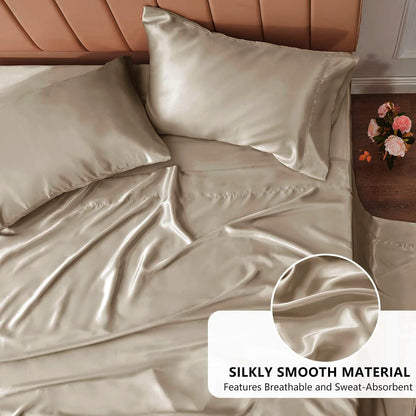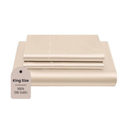 Mush 400TC Luxurious Satin Silk King Size Flat Sheet with 2 Pillow Covers - Silky Soft, Skin-Friendly, Breathable, Durable Premium Bedding | 108 X 108 Inches (Royal Beige, King Flat)