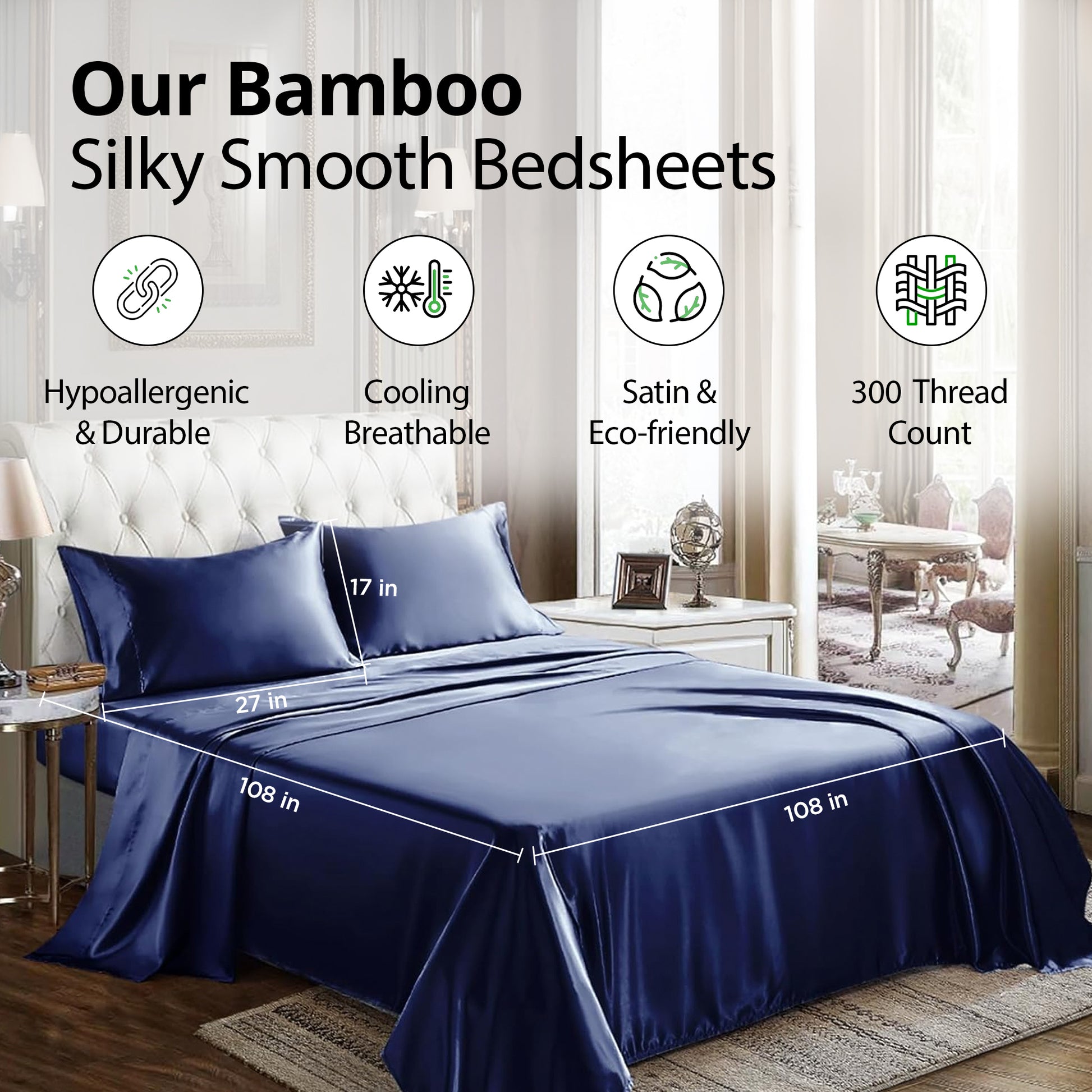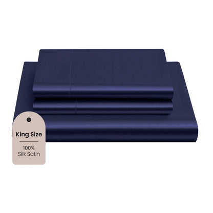 Mush 400TC Luxurious Satin Silk King Size Flat Sheet with 2 Pillow Covers - Silky Soft, Skin-Friendly, Breathable, Durable Premium Bedding | 108 X 108 Inches (Navy Blue, King Flat)