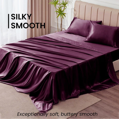 • LUXURIOUS SATIN: Experience the ultimate comfort of our premium satin silk polyester bedsheet, paired with two elegant matching satin pillow covers.