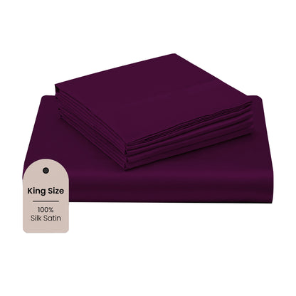 Introducing the BePlush Luxurious Silk Satin Bedsheet by Mush, a king-size bedding set designed for unparalleled comfort and style. This exquisite set includes a lavish 108x108 cm bedsheet crafted from 100% Satin-Silk Polyester complemented by two plush satin pillow covers. With its rich Royal Purple color, this bedding set enhances the aesthetic of any bedroom while providing a sumptuous sleeping surface.