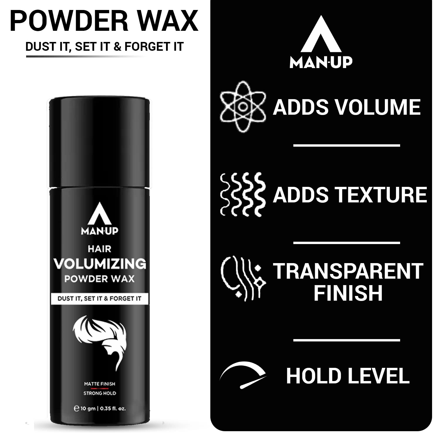 Man-Up Hair Volumizing Powder Wax For Men 10gm | Strong Hold With Matte Finish Hair Styling | All Natural & Zero Toxin Hair Styling Powder | Vegan & Cruelty Free