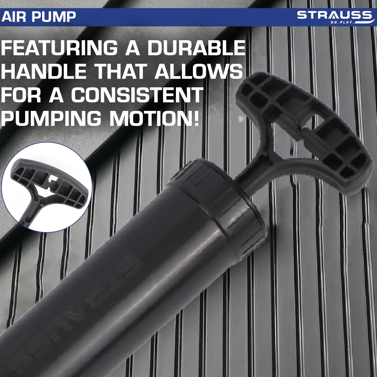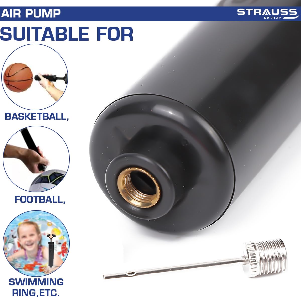 Strauss Hand Air Pump for Sports | Suitable for Football, Volleyball, Basketball, Rugby, Soccer Ball, Other Inflatable Balls | Air Inflator with Stainless Steel Pin (1 pcs), (Black)