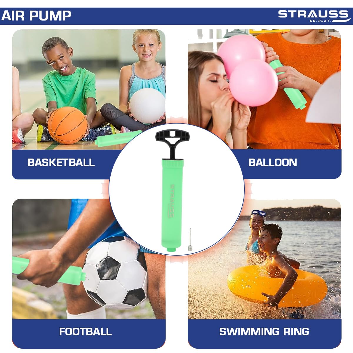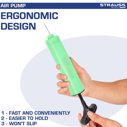 Strauss Hand Air Pump for Sports | Suitable for Football, Volleyball, Basketball, Rugby, Soccer Ball, Other Inflatable Balls | Air Inflator with Stainless Steel Pin (1 pcs), (Green)
