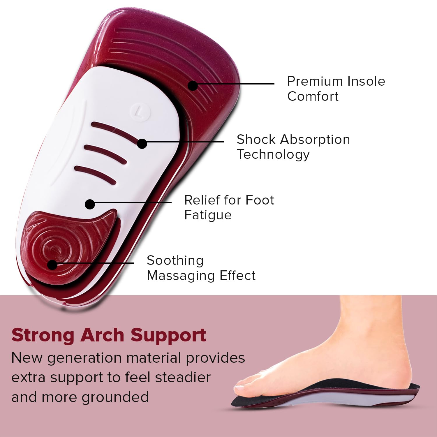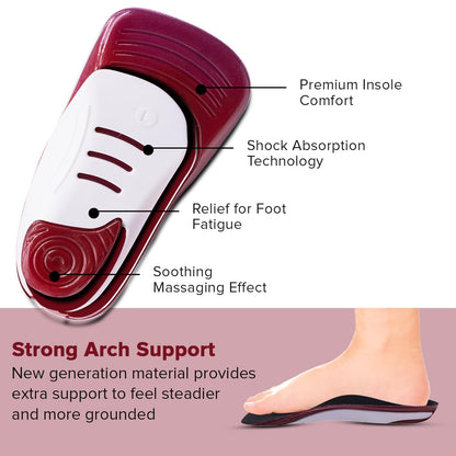 • Relief for Foot Fatigue: Massaging gel technology alleviates tiredness and soreness with strategically positioned gel pads.