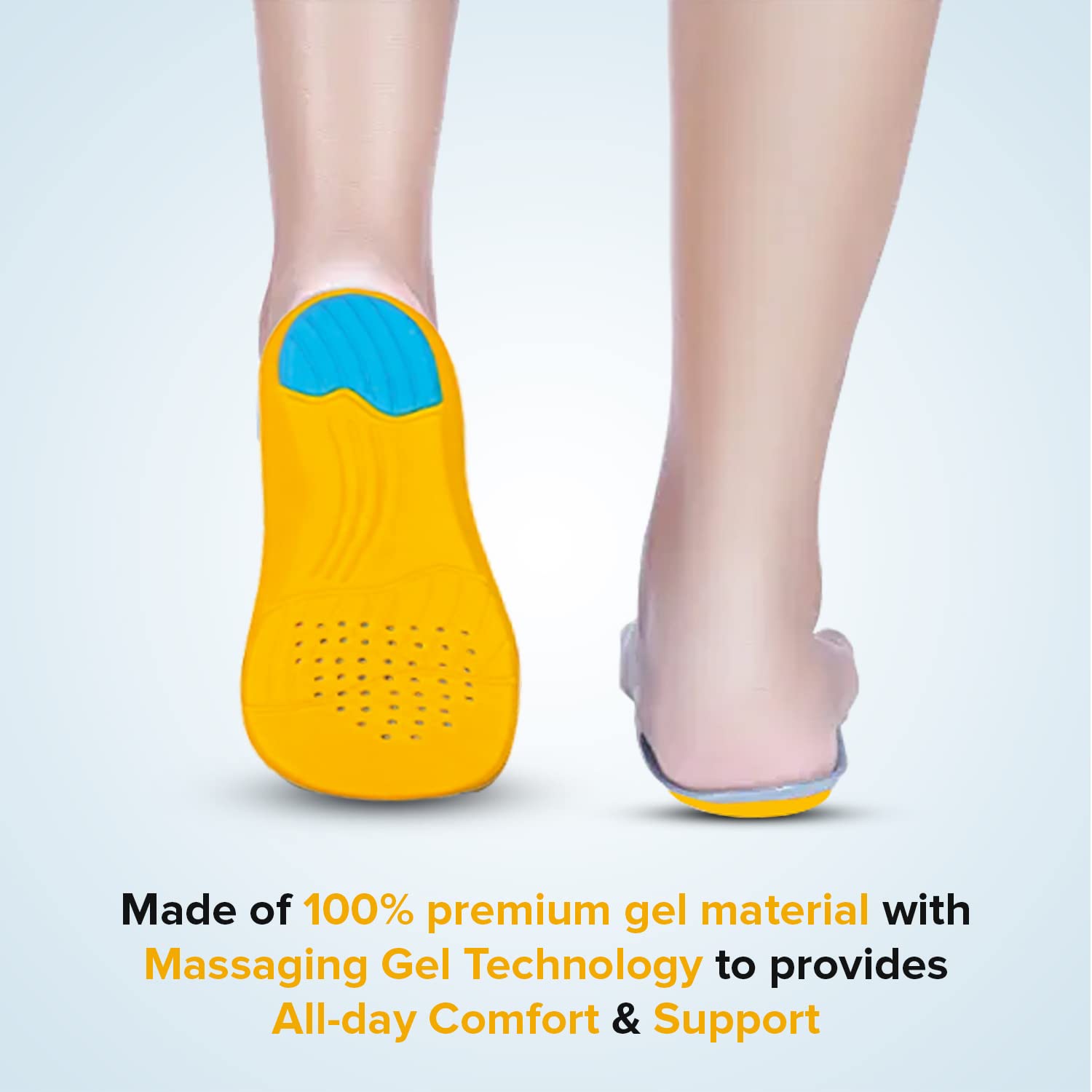 Medium Gel Insoles for Men & Women - Arch Support for Flat Feet | Yellow