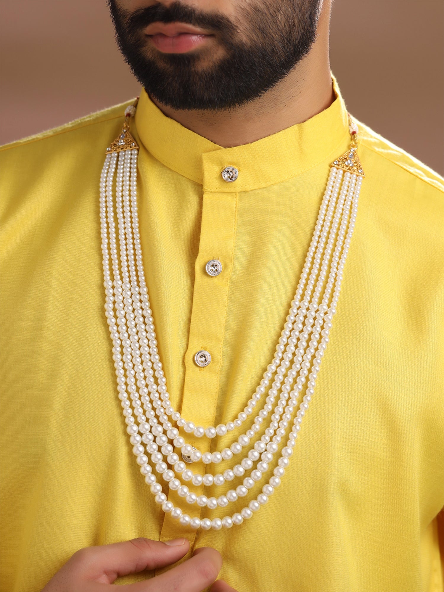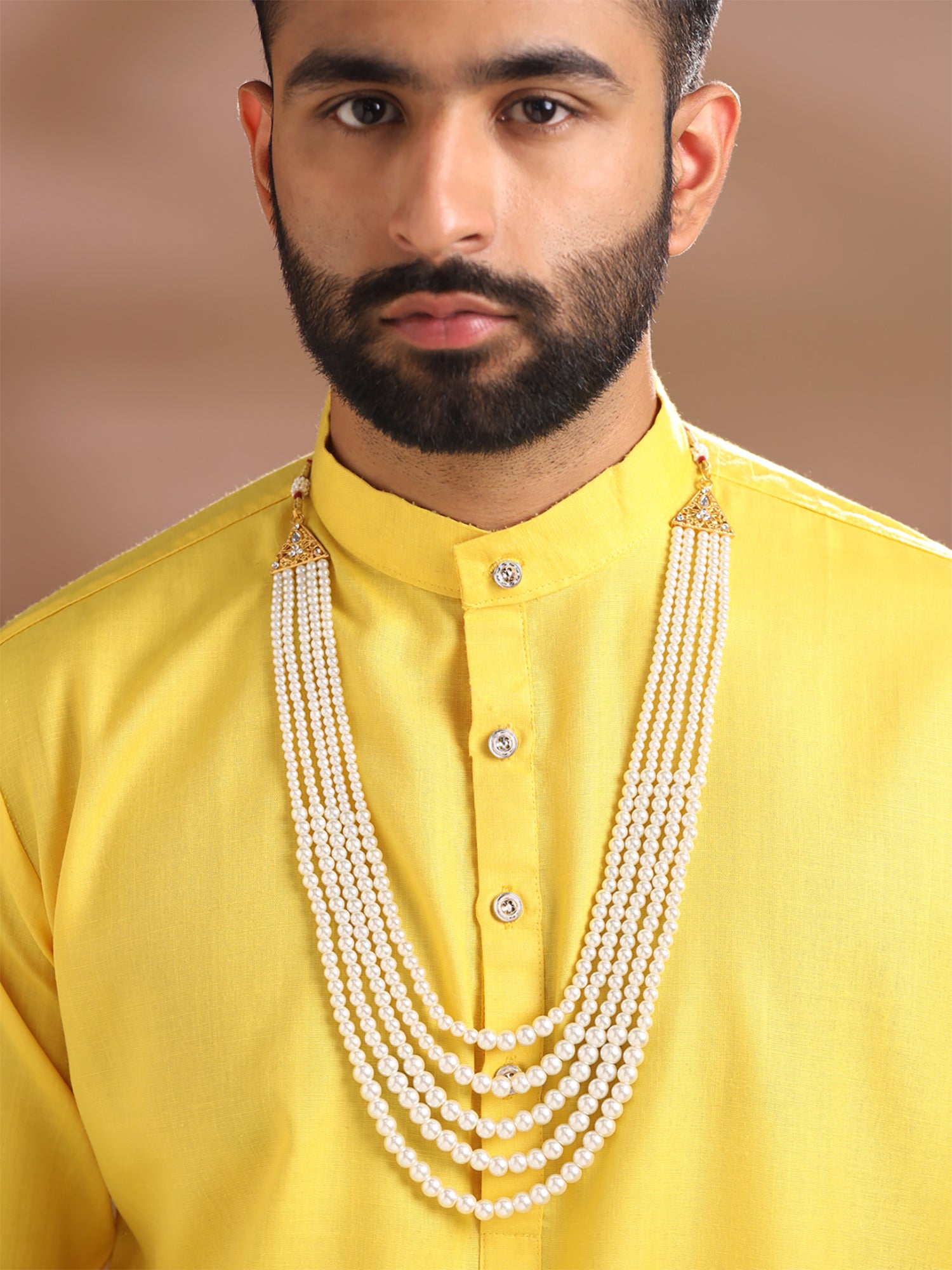 Yellow Chimes Dulahmala For Mens White Beads Pearl Necklace Jewellery for Groom Dulha Moti Mal Haar For Men Sherwani Necklace