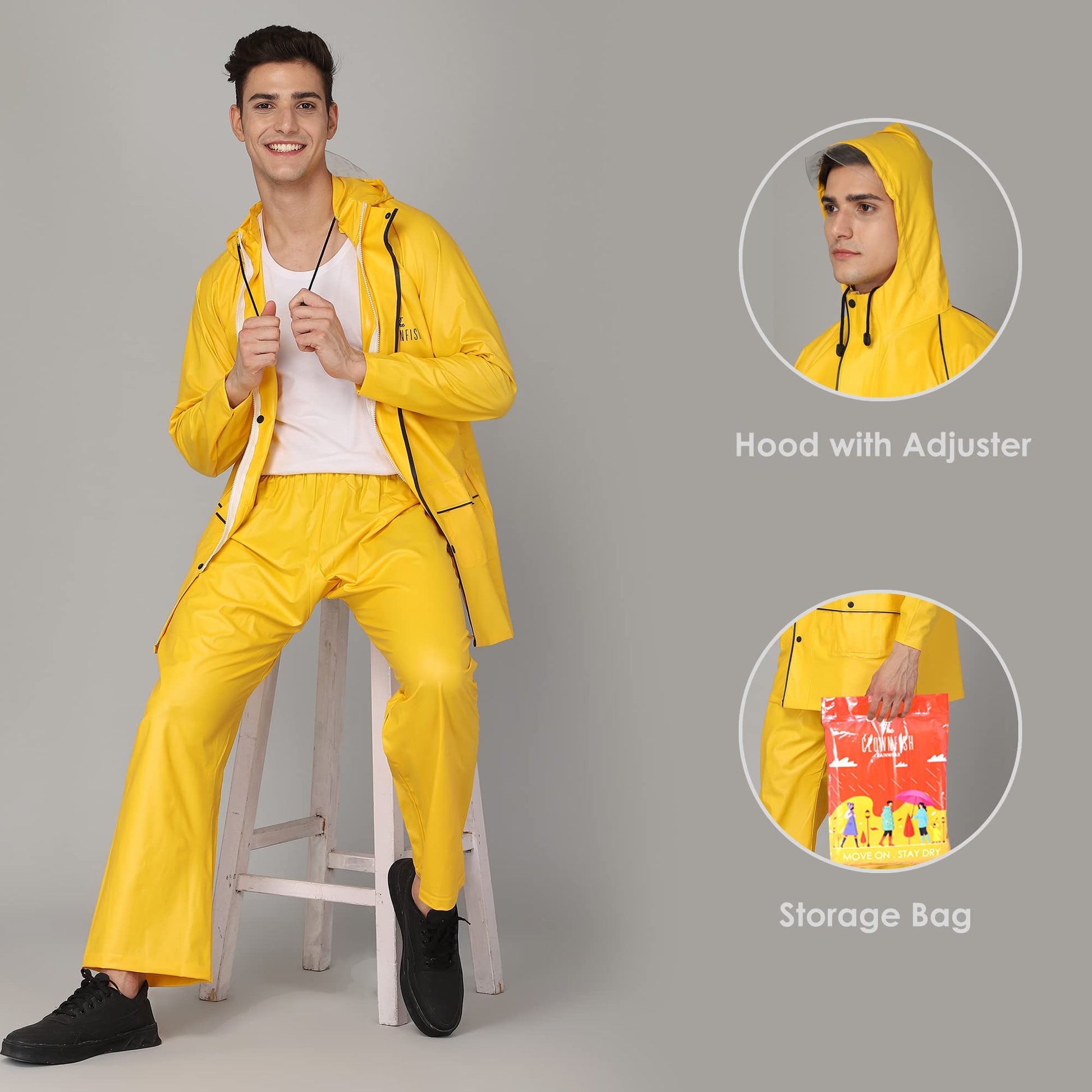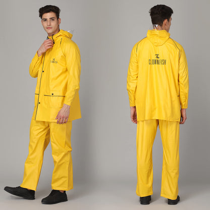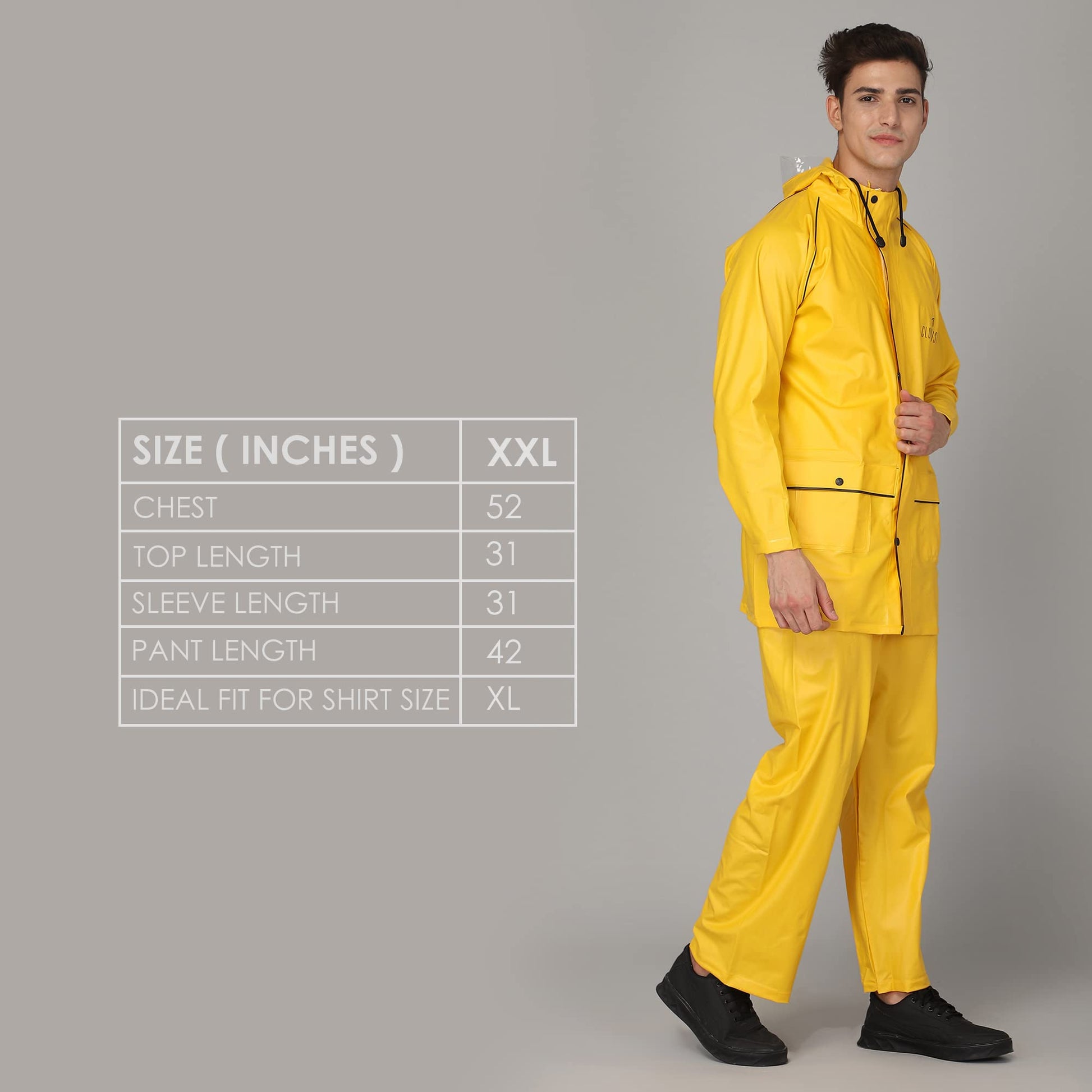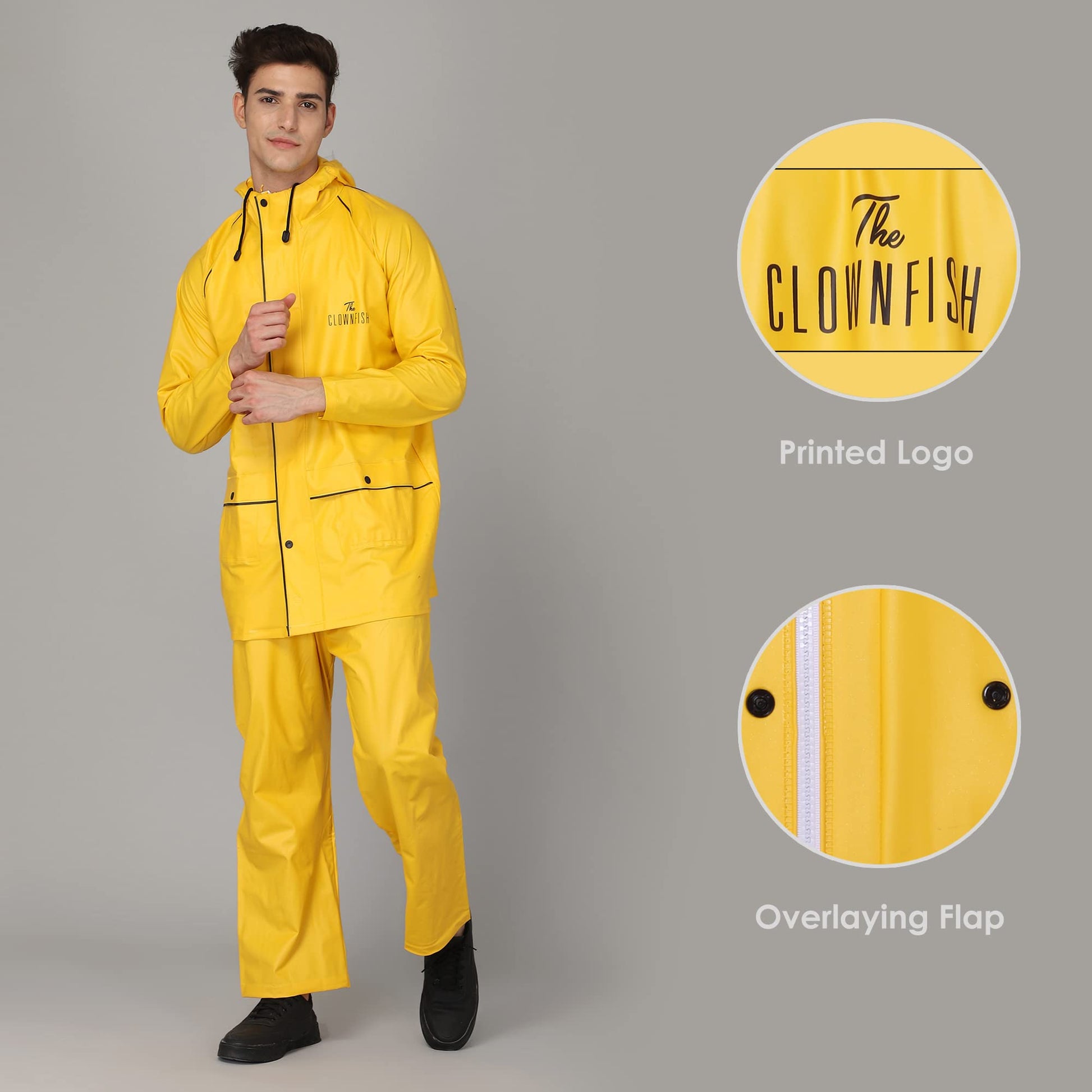THE CLOWNFISH Roberto Series PVC Rain Coat for Men Waterproof for Bike with Hood Raincoat for Men. Set of Top and Bottom Packed in a matching Storage Bag (Yellow with black piping, XX-Large)