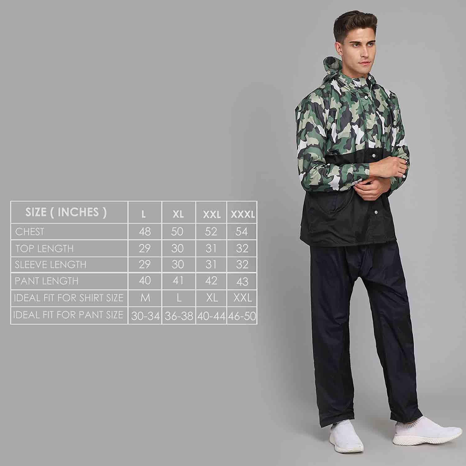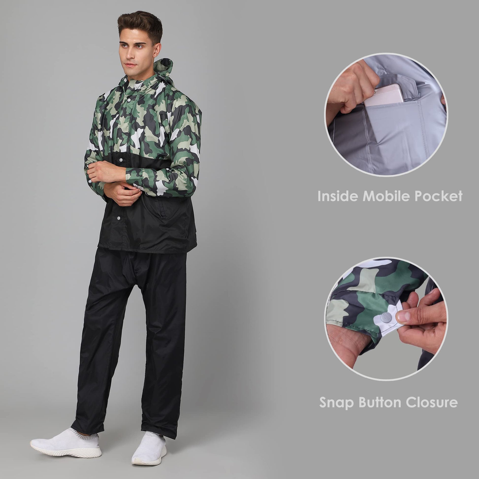 THE CLOWNFISH Rain Coat for Men Waterproof Raincoat with Pants Polyester Reversible Double Layer Rain Coat For Men Bike Rain Suit Rain Jacket Suit Inner Mobile Pocket with Storage Bag (Black XXL)