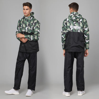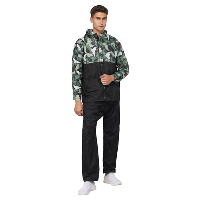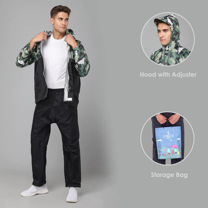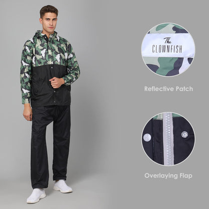 THE CLOWNFISH Road Rider Men's Waterproof Raincoat Polyester Double Coating Reversible Rain Suit with Hood & Inner Mobile Pocket. Set of Top and Bottom. Printed Plastic Pouch (Black, XX-Large)