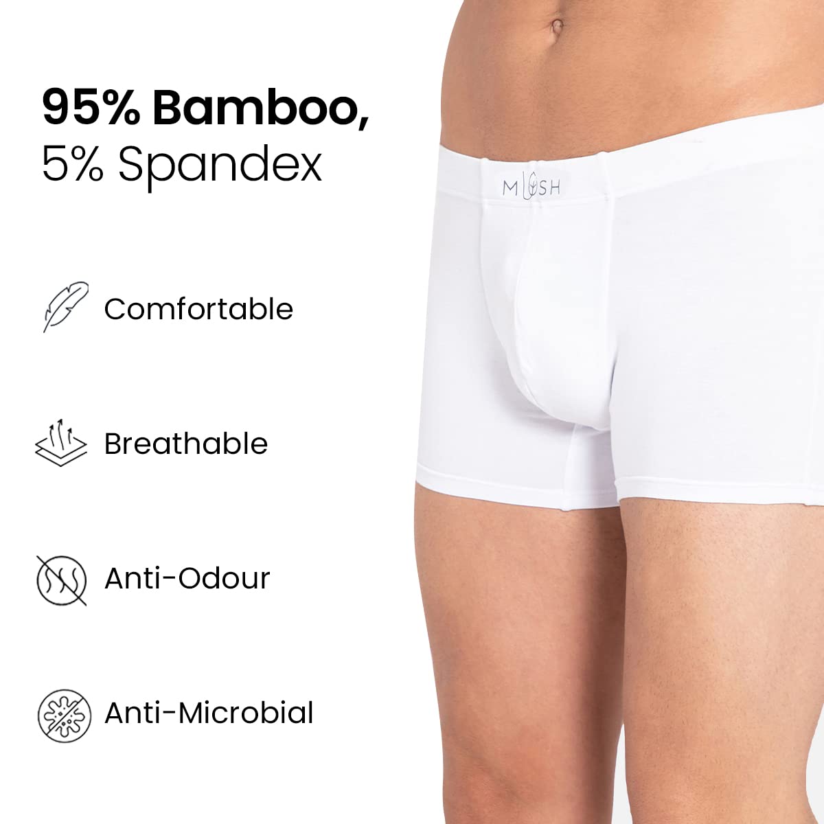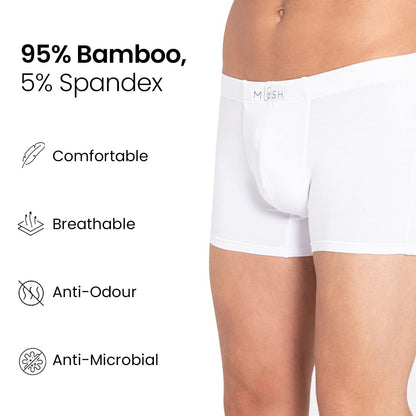 Ultra Soft, Breathable, Feather Light Men's Bamboo Trunk || Naturally Anti-Odor and Anti-Microbial Bamboo Innerwear (L, White)