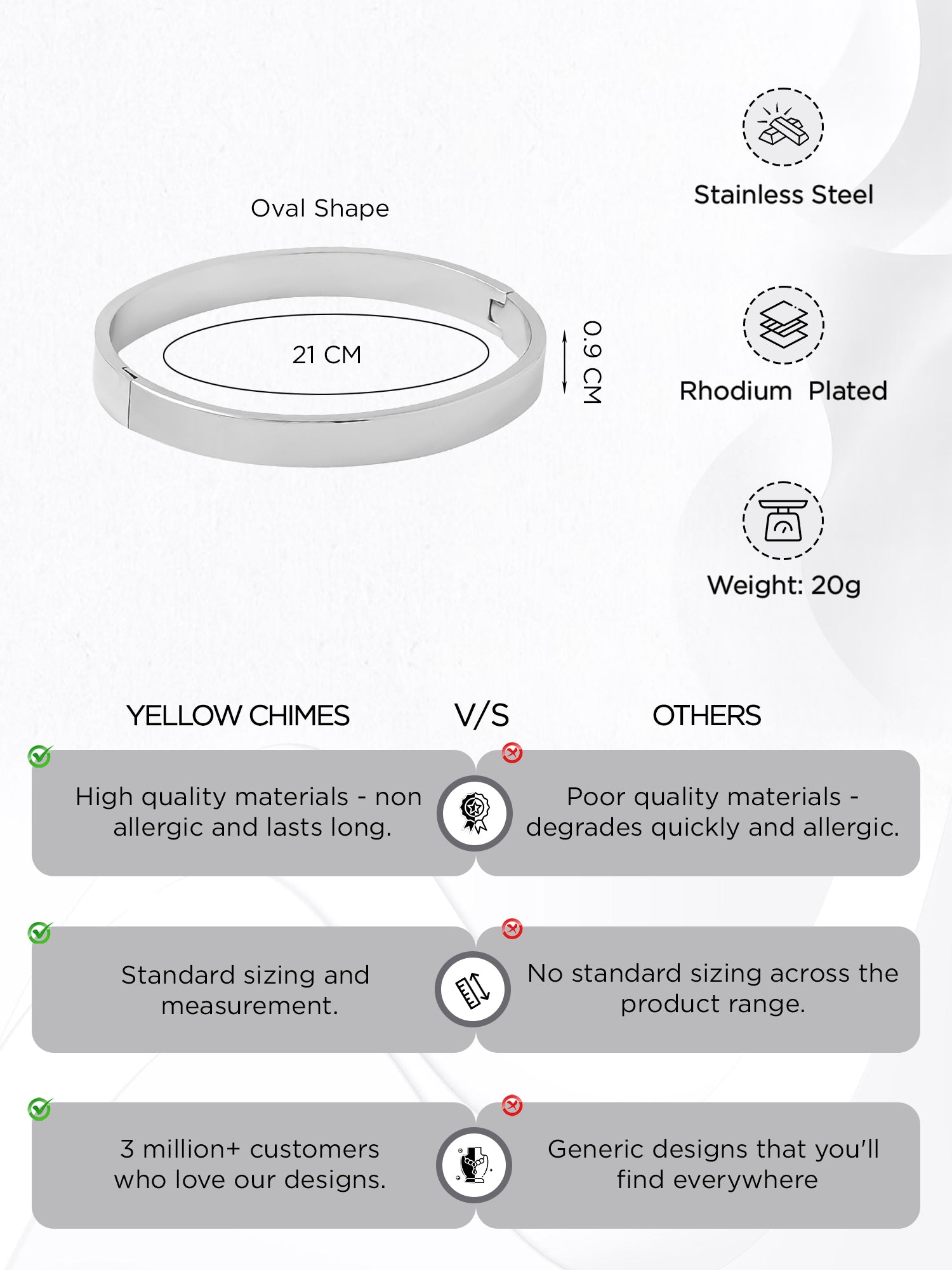 Yellow Chimes Bracelets for Men and Boys Fashion Silver Kada Bracelet for Men | Silver Toned High Polished Stainless Steel Kada for Men | Birthday Gift for Men and Boys Anniversary Gift for Husband
