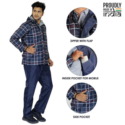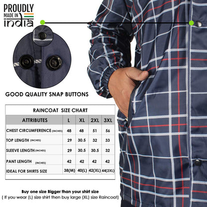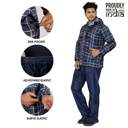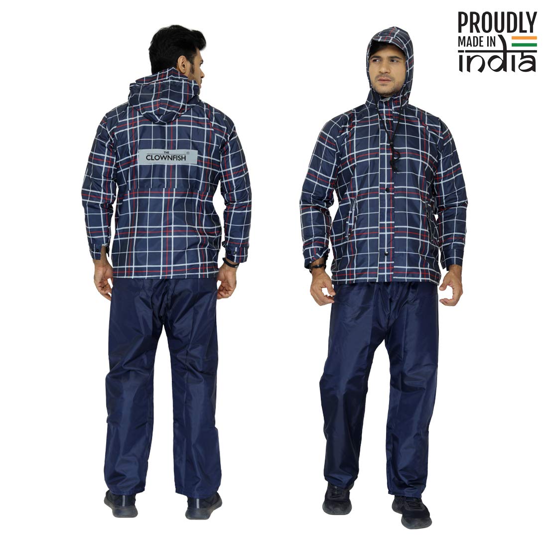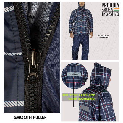 THE CLOWNFISH Monarch Men's Waterproof Polyester Double Coating Reversible Raincoat with Hood and Reflector Logo at Back for Night Travelling. Set of Top and Bottom (Navy Blue, XXL)